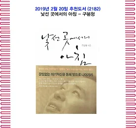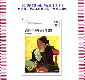 전체 글 썸네일형 리스트형 2월의 추천도서(2182) 낯선 곳에서의 아침 - 구본형 1. 책 소개 경영전문가 구본형이 말하는 자기혁신의 기본! 『낯선 곳에서의 아침』은 변화를 주제로 쓰여진 에세이적 자기개혁 입문서로, 경제, 경영, 철학, 문학, 역사의 문턱을 넘나들며 변화에 대한 탁월한 분석을 제시한다. 그 담론의 중앙에 '다양성과 균형'이 있다. '다양성'이란 규칙과 관행을 떠나 원칙이 지배하는 일상으로 회복하는 것, 즉 개인이 사회로부터 좀더 자유로워지는 것을 의미한다. 변화의 정체는 바로 이 '다양성'을 기초로 세상과 자신, 과거와 미래 사이에서 현재의 위치를 잡아가는 것이다. 그러므로 변화는 언제나 현재적이다. 저자는 이 책을 통해 변화란 무엇인지를 설명하고, 상식과 일상으로부터 일탈하여 자기 혁명 및 저항에 대한 진지한 고찰을 내 놓는다. (개정판) 출처 : 교보문고 2. 저.. 더보기 2월의 추천도서(2181) 낭만적 거짓과 소설적 진실 - 르네 지라르 1. 책 소개 문학평론가이자 사회인류학자인 르네 지라르의 저서. 소설 속의 인물들이 어떻게 욕망하는가 하는 인간 욕망의 구조를 밝혀내는 데에서 출발한 은 오늘날 우리의 욕망의 체계를 세르반테스의 등 소설 주인공의 욕망의 체계에서 발견하여 우리가 살고 있는 사회의 특성을 제시했다. 출처 : 교보문고 2. 저자 저자 르네 지라르는 문학평론가이자 사회인류학자. 1923년 남프랑스 아비뇽에서 태어나 1947년 파리 고문서학교를 졸업하고, 미국 인디애나 대학에서 역사학을 전공하였다. 인디애나 대학 프랑스어 강사를 시작으로 듀크 대학, 존스 홉킨스 대학, 뉴욕 주립대학, 스탠퍼드 대학 등에서 정교수?석좌교수 등을 지내며 프랑스의 역사, 문화, 문학, 사상에 관한 강의를 하였다. 이런 까닭에 그는 프랑스보다 미국에서.. 더보기 이전 1 ··· 1278 1279 1280 1281 1282 1283 1284 ··· 2425 다음