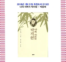 전체 글 썸네일형 리스트형 1월의 추천도서(2153) 나의 애송시 - 이응백 외 1. 책 소개 『나의 애송시』는 지난 1년 9개월 간 월간 [책과인생]에 연재된 애송시로 문학작가를 비롯 경영인, 교육가, 정치인, 예술인 등 현재 우리 사회 각계각층에서 활동하는 저명 인사들의 즐겨 읊는 시를 엮었다. 각기 평소에 애송하는 시를 한 편씩 소개하고 그에 대한 감상과 시에 얽힌 추억들을 곁들여 적었다. 출처 : 교보문고 2. 저자 저자 이응백은 경기도 파주 출생. 호는 난대(蘭臺). 서울대학교 사범대 국어교육과 졸업. 문학박사, 서울대 명예교수 역임. 한국 국어교육연구회 증경(曾經) 회장 역임. (사)한국어문회 명예 이사장. (사)중봉 조헌선생 기념사업회 회장 역임. 편·저서로는 《영원한 꽃의 향기》,《나들이》,《우리가 사는 길》, 《아름다운 우리말을 찾아서》,《한중 한문연원》,《국어교육사.. 더보기 1월의 추천도서(2152) 나의 아버지 박지원 - 박종채 1. 책 소개 중세기 우리나라 최고의 대문호인 연암 박지원의 둘째아들이 아버지의 가르침과 언행을 기록한 을 현대에 맞게 번역한 책. 위대한 문학가로서의 면모뿐 아니라 인간적 면모와 목민관 시절의 흥미로운 일 화까지 자세하게 담겨 있다. 출처 : 교보문고 2. 저자 박지원의 차남으로 자(字)는 사행(士行)이고 호는 혜전(蕙田)이다. 벼슬은 음직(蔭職)으로 경산현령을 지냈다. 개화사상의 형성에 큰 영향을 미친 박규수(朴珪壽)의 아버지이다. 저서로 《과정록》(過庭錄)이 있으며, 《나의 아버지 박지원》로 번역 출판되었다. 생전 관직은 현감에 이르렀으나, 사후 이조참판에 추증되었다가 여러번 추증, 이조판서로 증직되었다가 다시 영의정에 추증되었다. 출처 : 교보문고 3. 목차 001. 꿈에 붓을 얻다 002. 세상.. 더보기 이전 1 ··· 1293 1294 1295 1296 1297 1298 1299 ··· 2425 다음