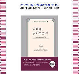 전체 글 썸네일형 리스트형 1월의 추천도서(2149) 나에게 읽어주는 책 - 나카시마 데루 1. 책 소개 ‘위인들이 존경한 위인’ 에머슨의 빛나는 인생 조언 “자기신뢰가 성공의 첫 번째 비결이다”신간 《나에게 읽어주는 책》은 19세기 사상가이자 철학자, 시인이었던 랠프 월도 에머슨의 빛나는 인생 조언을 담고 있다. 에머슨의 책을 찾아 읽으며 마음의 병을 극복한 뒤 심리상담가로 활동하고 있는 저자가 에머슨의 글에서 의미 있는 대목 100가지를 선별해 초역하고 이해를 돕기 위해 나름대로의 해석을 붙여놓았다. 180년 전, ‘자기 자신을 끝까지 믿는 힘’을 역설한 에머슨은 미래에 대한 불안감과 인간관계의 어려움으로 자신감을 잃어가고 있는 오늘날의 우리에게 유효한 삶의 이정표를 제시해준다. 이 책을 통해 에머슨의 가르침을 가슴에 새기며 읽고 쓰는 소중한 시간을 나 자신에게 선물해보자. 출처 : 교보문.. 더보기 1월의 추천도서(2148) 나에게 맞는 미니멀 라이프 - 아키 1. 책 소개 『나에게 맞는 미니멀 라이프』는 융통성 있는 미니멀 라이프를 지향하는 사람들을 위한 안내서다. ‘제대로 해야지’라는 생각에 오히려 시작도 하지 못하는 사람들을 위한 합리적인 미니멀 라이프 노하우가 집약되어 있다. 이 책에서 미니멀 라이프를 처음 시도하는 사람이든 여러 번의 ‘요요’를 겪으며 실패해본 사람이든, 누구나 각자에게 맞는 미니멀 라이프 스타일을 발견할 수 있을 것이다. 출처 : 교보문고2. 저자 저자 아키는 일본 니혼블로그무라 심플 라이프 부문 1위 블로거. 아이가 두 살이 될 무렵 회사에 복직한 저자는 회사일과 집안일 사이에서 갈팡질팡하며 시행착오를 되풀이했다. 궁지에 몰려서야 집안일 전부를 해야 하는 일로 끌어안았기에 지칠 수밖에 없었다는 점을 깨달았고, 비로소 완벽주의를 내려.. 더보기 이전 1 ··· 1295 1296 1297 1298 1299 1300 1301 ··· 2425 다음