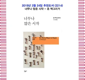 전체 글 썸네일형 리스트형 3월의 추천도서(2214) 너무나 많은 시작 - 존 맥그리거 1. 책 소개 인생을 움직이는 미세하고 무수한 순간들!영국의 차세대 작가로 주목받고 있는 존 맥그리거의 소설 『너무나 많은 시작』. 전작 의 여주인공 부모의 이야기로, 이주와 변화를 통해 자유와 풍요를 얻은 현대사 속 개인들의 내밀한 이야기를 그리고 있다. 박물관 큐레이터인 데이비드는 출장을 간 곳에서 만난 엘리너와 우여곡절 끝에 결혼하게 되고, 딸 케이트는 쑥쑥 자라 대학 입학과 동시에 집을 떠난다. 엘리너는 자신의 어머니가 저지른 실수를 되풀이하지 않으려다 소극적인 엄마가 된다. 한편 데이비드는 지금껏 자신의 삶 전체를 떠받쳐 왔던 거짓을 알게 되고, 자신과 관계된 기록물들을 모으기 시작하는데….출처 : 교보문고 2. 저자 1976년 북대서양의 버뮤다에서 태어나 잉글랜드의 노퍽, 노팅엄 등지에서 유년.. 더보기 3월의 추천도서(2213) 너무 일찍 나이 들어버린 너무 늦게 깨달아버린 - 고든 리빙스턴 1. 책 소개 너무 늦기 전에 지금 알아야 할 인생의 진실 30가지 『너무 일찍 나이 들어버린 너무 늦게 깨달아버린』 제1권. 살면서 흔히 부딪히는 고통과 절망을 극복하게 해주는 인생의 지혜를 30가지로 요약한 책이다. 실제로 두 아들을 잃는 인생의 커다란 시련을 겪기도 했던 저자는 ‘시련에 대처하는 방식이 각자 삶의 모습을 결정한다’고 말하며, 행복이란 우리 각자의 의지와 행동에 의해 결정된다는 사실을 강조한다. 또한 좋은 배우자를 만나는 법, 결혼생활을 지혜롭게 이끄는 법, 아름다운 노년을 준비하는 법 등 풍요로운 인생을 위한 실질적인 조언도 담았다. 2. 저자 저자 고든 리빙스턴 Gordon Livingston은 정신과 의사이자 심리상담가, 정신분석의, 작가. 웨스트포인트사관학교와 존스홉킨스 의과대.. 더보기 이전 1 ··· 1305 1306 1307 1308 1309 1310 1311 ··· 2468 다음