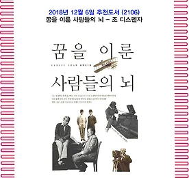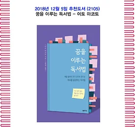 전체 글 썸네일형 리스트형 12월의 추천도서(2106) 꿈을 이룬 사람들의 뇌 - 조 디스펜자 1. 책 소개 뇌는 신경망을 통해 몸, 마음, 정신 모두를 다스리고 우리의 마음과 태도를 변화시킨다. 뇌를 통해 몸의 질병, 부정적인 감정과 에너지, 잘못된 습관에서 벗어나면 행복·성공·건강! 이 3가지가 저절로 이루어질 것이다.출처 : 교보문고 2. 저자 뉴저지 뉴 브런즈윅의 러트거스 대학에서 생화학을 공부했다. 애틀랜타의 라이프 대학에서 카이로프랙틱 박사 학위를 받고 뇌의 기능과 화학작용, 기억 형성 등에 대해 연구했다. 23세의 나이에 사이클 경기 도중 차에 치여 척추가 여섯 군데나 부러지는 사고를 겪었다. 척추에 철심을 꽂는 수술을 받지 않으면 평생 전신마비가 되고, 수술을 해도 낫는 데 6개월이나 걸린다는 의사들의 진단에도 불구하고 뇌와 몸의 자연치유력을 통해 수술 없이 단 12주 만에 걷게 되.. 더보기 12월의 추천도서(2105) 꿈을 이루는 독서법 - 이토 마코토 1. 책 소개 “책을 더럽히면 꿈을 이룰 수 있다. 이것은 내 경험이다.” 일본 최고의 사법시험 학원장이 알려주는 어떤 책을 어떻게 읽어야 하는가? * 합격하는 사람은 모두 책을 많이 읽는다 * 이 세상에 재미없는 책은 없다 * 한 가지 주제의 책을 한꺼번에 산다 * 책의 일부를 복사해 가지고 다니는 방법을 추천하는 이유 * 읽는 데 시간이 걸리는 책에 도전한다 * 방에서 선 채로 책을 읽는다 * 책에서 도움받은 경험이 인생을 가른다출처 : 교보문고 2. 저자 저자 이토 마코토는 1958년 도쿄 출생. 이토학원 원장. 1981년 도쿄대학 재학 중 사법시험에 합격했고, 그 후 사법시험 수험 지도를 시작, 단시간에 인기 강사가 되었다. 1995년 ‘이토 마코토의 사법시험학원(현 이토학원)’을 설립, ‘이토 .. 더보기 이전 1 ··· 1317 1318 1319 1320 1321 1322 1323 ··· 2425 다음