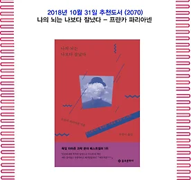 전체 글 썸네일형 리스트형 11월의 추천도서(2071) 백 살에는 되려나 균형 잡힌 마음 - 다카하시 사치에 1. 책 소개 단 1밀리미터라도 더 나은 방향으로 마음의 ‘균형’을 찾아간다면 그것으로 충분하다 저자 다카하시 사치에는 100세 정신과 의사 할머니다. 서른 셋에 의사가 된 후로 일하는 재미에 푹 빠져 어느덧 100세를 맞았다. 지금까지 만난 환자들의 일화를 통해 자신의 인생을 돌아보고, 사람들에게 도움을 주고자 이 책 《백 살에는 되려나 균형 잡힌 마음》을 썼다. 평소 마음이 불안정하면 일상에서 결정을 내리거나 행동하기 쉽지 않다. 저자는 이럴 때 마음을 평온한 상태로 유지하고, ‘균형’을 파악해야 한다고 말한다. 그는 이 책에서 크게〈인생의 균형〉〈생활의 균형〉〈건강의 균형〉〈인간관계의 균형〉〈사랑의 균형〉 다섯 가지 관점으로 나누어 구체적으로 조언한다. 조언이라고 해서 특별히 어렵거나 거창한 것이 .. 더보기 10월의 추천도서(2070) 나의 뇌는 나보다 잘났다 - 프란카 파리아넨 1. 책 소개 독일 아마존 과학 분야 베스트셀러 1위 “우리의 뇌는 언제나 타인에 대한 생각으로 가득 차 있다” 사회신경과학자가 뇌 과학으로 얽히고설킨 인간관계의 문제를 통쾌하게 풀어낸 책!뇌 과학으로 인간관계에서 발생하는 소통의 부작용과 갈등을 색다르게 풀어낸 책이 을유문화사에서 나왔다. 뇌는 구두쇠다. 한 번 판단한 일에 두 번 힘쓰지 않는다. 그래서 미운털이 박힌 사람은 웬만해선 그 털을 뽑아내기가 쉽지 않다. 거기에 뇌는 기억력 천재다. 한 번 경험한 일은 절대 잊지 않는다. 그러니 처음부터 잘 알고 조심하는 게 좋다. 이렇듯 우리 뇌는 잘나도 너무 잘나셨다! 그러나 우리는 부모, 친구, 애인, 직장 동료는 물론이고 지하철에서 고래고래 소리 지르는 짜증나는 인간과도 더불어 살아야 한다. 이 말인즉.. 더보기 이전 1 ··· 1335 1336 1337 1338 1339 1340 1341 ··· 2424 다음