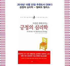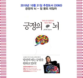 전체 글 썸네일형 리스트형 10월의 추천도서(2061) 긍정의 심리학 - 앨버트 엘리스 1. 책 소개 무한 경쟁 시대를 살아가는 현대인들의 정서장애를 개선시켜주는 자기진단 치료노트! 『마음을 변화시키는 긍정의 심리학』은 현대인이라면 누구나 갖고 있는 불안함을 치료하여 긍정적인 자신감과 창조적인 삶으로 이끌어준다. 합리적인 인지 정서 행동치료의 창시자인 앨버트 엘리스 박사와 자기진단 치료의사인 로버트 하퍼 박사가 힘을 합쳐 불안한 현대인들의 심적 스트레스와 정서 불안을 자기진단 치료할 수 있도록 해준다. 본문은 세계적으로 가장 대중적인 스트레스 치료방법인 REBT 인지·정서·행동치료이론을 중심으로 '불행을 느끼지 않는 법, 감정을 통제하는 법, 자기 훈련 방법, 정서장애의 가능성을 낮추기 위한 심오하고 합리적인 철학 획득법' 등 누구나 쉽게 스스로 불안한 마음을 치유할 수 있는 방법을 제시한.. 더보기 10월의 추천도서(2060) 긍정의 뇌 - 질 볼트 테일러 1. 책 소개 당신의 뇌는 긍정을 원하고 있다!하버드 의과대학에서 인간의 뇌에 대한 연구와 강의를 하고 있었던 저자는 뜻하지 않게 뇌출혈이 발생하여 인지능력을 하나씩 상실해가고 뇌졸중 극복을 위해 치료를 하기 시작했다. 이 책은 저자의 이런 경험과 의학적 지식을 바탕으로 뇌졸중의 증상과 극복기, 그리고 뇌졸중으로 알게 된 새로운 세상을 이야기한다. 말하기, 듣기, 읽기, 쓰기, 걷기 등 뇌 기능이 하나둘 무너져 내리는 과정을 몸소 체험하고, 병원에서 각종 검사를 받으며 느낀 점들, 개두 수술을 받기 위해 어떤 준비를 했는지, 회복에 가장 도움이 되는 것들이 무엇이었는지 등 자신의 실제 경험을 명료하게 풀어냈다. 또한 뇌졸중으로 인해 좌뇌가 멈춰버리고 우뇌로만 세상을 사고하면서 깨닫게 된 세상의 아름다움을.. 더보기 이전 1 ··· 1340 1341 1342 1343 1344 1345 1346 ··· 2424 다음