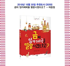 전체 글 썸네일형 리스트형 10월의 추천도서(2059) 금이 잉카제국을 멸망시켰다고? - 이은정 1. 책 소개 광물, 인간의 역사를 바꾸다!인간의 역사와 문화는 광물과 함께 발전해 왔습니다. 광물은 인류 문명과 세계 여러 나라들의 운명에 거대한 영향을 끼쳤지요. 광물로 인해 크게 발전한 나라가 있는 반면, 광물 때문에 사람들 간의 싸움이 일어나고 큰 피해를 겪게 된 나라도 있답니다.『금이 잉카제국을 멸망시켰다고?』는 오랜 시간 인간의 운명을 좌지우지했던 광물, 그 기묘하고도 다채로운 광물의 세계로 어린이 독자들을 초대합니다! 출처 : 교보문고 2. 저자 저자 이은정은 오늘을 즐기면 멋진 내일이 올 거라는 믿음이 있어요. 아이들이 역사를 통해 세계를 바르게 이해하길 희망하며 역사 체험학습 선생님으로 활동하고 있답니다. 그동안 쓴 책으로는 『길바닥 세계사 음식 이야기』가 있습니다.저자 장재원은 이화여자.. 더보기 10월의 추천도서(2058) 금융의 지배 - 니얼 퍼거슨 1. 책 소개 금융을 이해하는 자가 세계를 지배한다!위기의 시대에 돌아보는 세계 금융의 역사『금융의 지배』. 우리 시대 최고의 지성, 21세기 최고의 경제사학자 중 한 사람으로 손꼽히는 니얼 퍼거슨이 인류 진보의 토대이자 모든 인류 역사에 필수 배경이었던 금융사를 재조명한다. 고대 메소포타미아부터 오늘날 중국에 이르기까지 세계 금융사 전반을 다루면서 정치, 경제, 역사, 문화 등 다양한 분야를 넘나들며 날카롭게 분석하고 있다.출처 : 교보문고 2. 저자 1964년 영국 스코틀랜드 글래스고 출생. 옥스퍼드 대학교 모들린 칼리지에 장학생으로 입학, 1985년 최우등으로 졸업하였다. 근대 제국주의에 관한 정통 학설에 도전한 수정주의 역사가로도 알려져 있으며, 저널리즘에서도 다양하고 폭넓은 활동을 하고 있다. .. 더보기 이전 1 ··· 1341 1342 1343 1344 1345 1346 1347 ··· 2424 다음