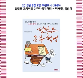 전체 글 썸네일형 리스트형 8월의 추천도서(1980) 핀란드 교육혁명 3부작 공부혁명 - 박재원, 임병희 1. 책 소개 『핀란드 공부혁명』은 공부때문에 고통받지 않고, 공부를 즐기며 할 수 있도록 핀란드식 공부법을 배운다. 좀 더 많은 학생과 학부모가 쉽게 이해하고 공감할 수있도록 소설 형식으로 구성되어 있다.출처 : 교보문고 2. 저자 저자 박재원은 공부의 효율성을 기준으로 따진다면 세계 최고임을 자부하는 학습 전문가다. 강남 대치동에서 멀리 제주도까지 전국을 누비면서 정말 많은 학생, 학부모들을 만나 강의와 상담을 했다. 공부가 성공의 발판이 되는 것이 아니라 실패의 원인이 되는 안타까운 현실을 조금이라도 개선해보려는 열정 때문이다. 보다 과학적인 연구 활동과 올바른 공부 '성공론' 의 확산을 위해 (주)비상교육 공부연구소 소장으로 강연, 집필, 방송 출연 등 다양한 활동을 전개하고 있다. 중앙일보에서 .. 더보기 청소년 · 대학생 · 일반인을 위한 추천도서 (66) (2018.8) 더보기 이전 1 ··· 1381 1382 1383 1384 1385 1386 1387 ··· 2424 다음