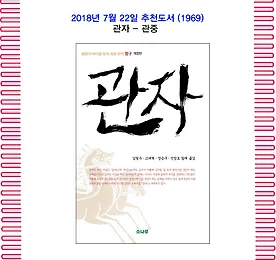 전체 글 썸네일형 리스트형 7월의 추천도서(1969) 관자 - 관중 1. 책 소개 《관자》는 중국 춘추전국 시대 대표적 고전의 하나이면서도, 《논어》, 《맹자》, 《노자》, 《장자》, 《한비자》에 비해 비교적 덜 알려져 있다. 다른 고전은 순수한 도덕이나 이상적 철학에 대한 내용이 주종을 이루고 있지만, 《관자》에는 도덕과 철학을 바탕으로 한 경제 정치 법학 외교 행정 군사 교육 등 경세와 관련된 내용이 주종을 이루고 있다. 관자는 유교나 도가의 고전에 비해 실용주의적 성격을 강하게 지니고 있는 경세서이다.출처 : 교보문고 2. 저자 저자 관중管仲은 우리에게 관포지교管鮑之交라는 고사로 잘 알려져 있는 관자管子는 기원전 약 725~645년에 활동한 사람으로 이름은 이오夷吾, 자는 중仲이다. 그는 춘추전국 시대를 대표하는 최고의 정치인 가운데 한 명으로, 중국 역사 전체를 .. 더보기 7월의 추천도서(1968) 달마대사 관심론 - 혜암 1. 책 소개 중국 선종(禪宗)의 초조(初祖)로 불리는 보리달마(菩提達摩, ? ~528)가 설한 심론(心論)을 정리한 선종의 지침서이다. 북종선의 개조인 신수(神秀, ?∼706)의 저술 『파상론(破相論)』과 일치되는 부분이 다수 발견되어 신수가 속찬한 것으로 추정된다. 달마대사와 중국 선종의 2조가 되는 혜가(惠可, 481~593)와 주고받은 문답 형식으로 구성되었다.마음[心]이 만법(萬法)의 근본이며 일체의 모든 법이 오직 마음이 낸 바임을 전한 책으로, 마음을 살피[觀]는 법을 또한 설명하였다. 돈황 장경굴에서 발견된 사본 가운데 보이며, 고려시대에 수용된 이래 한국불교 선종의 사상적 이념을 제공하였던 문헌으로 주목되었다.내용은 달마대사와 그의 수제자이자 중국 선종의 2조가 되는 혜가가 주고받은 문답.. 더보기 이전 1 ··· 1387 1388 1389 1390 1391 1392 1393 ··· 2424 다음