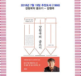 전체 글 썸네일형 리스트형 7월의 추천도서(1967) 관찰의 기술 - 양은우 1. 책 소개 나를 바꾸고 세상을 바꾸는 8가지 관찰의 기술!『관찰의 기술』은 다양한 기업에서 경영 및 기획 전략가로 활약해 온 저자 양은우가 부와 혁신, 더 나아가 원활한 인간관계를 삶의 행복을 결정짓는 요소로 보고, 이를 가능하게 하는 답을 '관찰'에서 찾는다. 혁신으로 세계의 부를 움직인 다양한 사례를 통해 엄청난 발견이라도 그 시작은 결국 사소한 발견에서 시작한다는 것을 직접 고안한 관찰 프로세스와 함께 설명한다. '동인→관찰→발견→깨달음→개선'의 관찰 프로세스가 원활히 습관으로 정착될 수 있도록 하는 8가지 요소를 ‘왓칭(WATCHING)’의 개념으로 만들고 각각을 자세히 살펴본다. 더불어 관찰을 활용하는 방법도 함께 담았다.출처 : 교보문고 2. 저자 저자 양은우는 고려대학교 산업공학과에서 학.. 더보기 7월의 추천도서(1966) 강원국의 글쓰기 - 강원국 1. 책 소개 《대통령의 글쓰기》, 《회장님의 글쓰기》를 잇는 강원국의 ‘글쓰기 3부작’ 결정판 4년 만에 출간! 28년 노하우가 담긴 이 책을 읽는 순간 내 글을 써야 하는 강력한 동기가 생긴다 “선생님 강의 듣고 저도 글 써야겠다고 마음먹었어요.” 저자 강원국은 첫 책 《대통령의 글쓰기》를 출간한 이래로 지금까지 1,000회가 넘는 글쓰기 강연을 하고, 블로그와 홈페이지에 2,000개가 넘는 글을 썼다. 첫 책 출간 이후 말과 글에 관해서만 생각하며 살아온 셈이다. 앞서 쓴 두 책 《대통령의 글쓰기》와 《회장님의 글쓰기》가 두 대통령과 기업 리더들에게서 직접 보고 듣고 배운 말과 글 그리고 소통에 관한 책이라면, 이번 책 《강원국의 글쓰기》는 28년간 암중모색과 고군분투 과정을 거쳐 얻은 저자의 글쓰.. 더보기 이전 1 ··· 1388 1389 1390 1391 1392 1393 1394 ··· 2424 다음