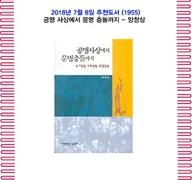 전체 글 썸네일형 리스트형 7월의 추천도서(1955) 공맹사상에서 문명충돌까지 - 양창삼 1. 책 소개 경영에 관한 교양서. 경영을 국가, 사회, 그리고 문명에까지 확대하고자 하는 필자의 의도를 담아 각 주제마다의 예와 설명으로 엮었다출처 : 교보문고 2. 저자 서울대학교 정치학과(석사)와 동 대학원에서 경영학(석사)을 전공, 미국 서일리노이주립대학원(MBA), 펜실베이니아주립대학에서 수학했으며, 연세대학교 경영학박사과정을 수료하고, 총신대학교 대학원(M.Div., Th.M.)을 마쳤다. 현재 한양대학교 산업경영대학원장 및 한양대학교 디지털 경영학부 교수로 재직중이며, 목사이기도 하다. 많은 기업에서 경영컨설팅 자문역을 하고 있으며, 교회성장에 관련된 혁신적 시각을 제시하는 강연활동과 이에 관련된 글을 쓰고 있다. 지은 책으로는 [영성회복의 신앙] [기독교교육행정][교회행정학][창세기 강해].. 더보기 7월의 추천도서(1954) 공자가 내게 인생을 물었다 - 구위안 1. 책 소개 우리 시대 가장 빛나는 멘토 사서(四書)에게 듣는 인생 명강!멘토의 시대다. 저마다 인생의 멘토를 찾고, 그들에게서 힐링을 원한다. 어쩌면 극단의 경쟁과 생계를 위한 사투에서 오는 삶의 고단함이 이런 멘토 과잉의 시대를 낳았는지도 모른다. 어떻게 살아야 하는지 모르겠다, 내가 지금 잘하고 있는 건지 모르겠다는 일상적인 공포가 누군가의 위로와 격려를 갈망하고, 때로는 따끔한 조언을 아끼지 않는 대상을 갈구하게 된 것은 아닐까? 중국 경전은 이런 시대의 흐름 속에서 오랫동안 멘토의 역할을 담당해왔다. 너무 고루하고 시대에 뒤떨어지는 고대 문헌이 아니냐고 반문할 사람도 있겠지만, 수천 년의 시간을 건너 지금까지 사서가 읽히는 이유는 그 안에 시대를 초월하는 진리가 담겨 있기 때문이다. 빛바래지 .. 더보기 이전 1 ··· 1394 1395 1396 1397 1398 1399 1400 ··· 2424 다음
