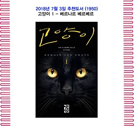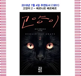 전체 글 썸네일형 리스트형 7월의 추천도서(1951) 고양이 2 - 베르나르 베르베르 1. 책 소개 고양이의 눈으로 바라본 인간의 미래!베르나르 베르베르의 신작 장편소설 『고양이』 제1권. 파리에서 살고 있는 암고양이 바스테트의 시각에서 인간의 문명을 바라보는 작품이다. 인간이 상상하기 어려운 타자의 시각을 도입하여, 인간 중심주의를 해체하고 이 지구에서 인간이 차지해야 할 적절한 위치를 끊임없이 고민해 온 저자의 문제의식이 그동안 좀 더 성숙해지고 발전해 왔음을 알게 된다. 테러가 일상화되고 내전의 조짐이 보이는 파리. 몽마르트르에서 집사인 나탈리와 함께 사는 암고양이 바스테트는 어느 날 옆집에 사는 천재 샴 고양이 피타고라스를 만난다. 한때 실험동물이었던 피타고라스는 머리에 USB 단자가 꽂혀 있어 인터넷을 통해 방대한 지식을 갖춘 지적인 고양이다. 피타고라스에게서 인류와 고양이의 역.. 더보기 7월의 추천도서(1950) 고양이 1 - 베르나르 베르베르 1. 책 소개 고양이의 눈으로 바라본 인간의 미래!베르나르 베르베르의 신작 장편소설 『고양이』 제1권. 파리에서 살고 있는 암고양이 바스테트의 시각에서 인간의 문명을 바라보는 작품이다. 인간이 상상하기 어려운 타자의 시각을 도입하여, 인간 중심주의를 해체하고 이 지구에서 인간이 차지해야 할 적절한 위치를 끊임없이 고민해 온 저자의 문제의식이 그동안 좀 더 성숙해지고 발전해 왔음을 알게 된다. 테러가 일상화되고 내전의 조짐이 보이는 파리. 몽마르트르에서 집사인 나탈리와 함께 사는 암고양이 바스테트는 어느 날 옆집에 사는 천재 샴 고양이 피타고라스를 만난다. 한때 실험동물이었던 피타고라스는 머리에 USB 단자가 꽂혀 있어 인터넷을 통해 방대한 지식을 갖춘 지적인 고양이다. 피타고라스에게서 인류와 고양이의 역.. 더보기 이전 1 ··· 1396 1397 1398 1399 1400 1401 1402 ··· 2424 다음