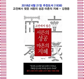 전체 글 썸네일형 리스트형 6월의 추천도서(1938) 고전에서 찾은 서른의 성공 마흔의 지혜 - 김원중 1. 책 소개 진정한 성공의 해답을 고전에서 찾다! 고전에서 건져 올린 삶의 지혜와 통찰을 전해주는 책『서른의 성공 마흔의 지혜』. 중국 고전의 대가로 잘 알려진 김원중 교수가 고전에서 찾은 경구와 예화에 담긴 지혜를 삶의 영역으로 가져왔다. 처세부터 학문까지 인생의 여러 방면을 이야기하는 , 인간은 무엇을 위해 사는가에 대한 해답을 알려주는 , 처세와 전략을 담은 , 통찰과 지혜를 담은 등 수천 년에 걸쳐 내려온 고전에서 경구들을 엄선했다. 이를 바탕으로 한 주옥같은 조언들을 통해 난세를 이겨낸 성현들의 지혜와 삶에 대한 자세를 배울 수 있다. 출처 : 교보문고 2. 저자 충북 보은에서 출생하여 조부로부터 한학을 익혔고, 성균관대 중문과에서 중국고전문학연구로 박사학위를 받았다. 중국 대만 중앙연구원 중.. 더보기 6월의 추천도서(1937) 고전과 놀이 - 김월회 1. 책 소개 "필자는 근대문명의 핵 가운데 하나인 합리적 이성의 토대가 우리사회에는 아직 온전히 갖춰져 있지 못하다고 판단한다. 그것을 토대로 한 성숙한 시민사회가 합리적이고 이성적인 역량을 발휘하고 있는가에 대해 필자는 사뭇 회의적이다. 그런가 하면 필자는 근대문명의 제반 병폐를 건설적으로 극복하는 문제 역시 우리가 짊어져야 하는 과제라는 점에 동의한다.출처 : 교보문고2. 목차 일러두기 머릿말 제1부 들머리 제1강 '망치'와 고전의 결험 제2장 '방법'으로서의 고전 제3강 고전에서 '고전' 벗겨내기 제4강 고전과 '놀이' 제2부 공자와 『논어』의 무대 제1강 중원의 성립과 공자의 시대 제2강 춘추시대의 지식생태계 제3강 『논어』 개략 제3부 『논어』 읽기 제1강 상식과 통념, 당연함을 넘어 제2강 .. 더보기 이전 1 ··· 1403 1404 1405 1406 1407 1408 1409 ··· 2424 다음