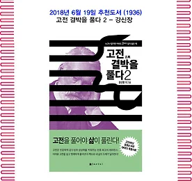 전체 글 썸네일형 리스트형 6월의 추천도서(1936) 고전 결박을 풀다 2 - 강신장 1. 책 소개 고전은 인문학적 감수성과 상상력을 일깨워주는 최고의 레퍼런스다. 수백 수천 년의 시간을 살아남은 인류의 지적 유산이기 때문이다. 하지만 고전이 가진 또 다른 이름은 ‘누구나 알지만 아무도 끝까지 읽지 않은 책’이다. 그 이유는 무엇일까? 결박을 두르고 있기 때문이다. 고전은 두껍다는 ‘두꺼움의 결박’, 고전은 어렵다는 ‘어려움의 결박’, 그래서 고전은 정복 불가능한 산이라는 ‘두려움의 결박’. 그 모든 결박을 시원하게 해결한 『고전(古典) 결박을 풀다』 제2권. 고전해결사로 나선 저자가 이번에는 어떤 책들을 가려 뽑아 어떤 통찰을 담아 차려냈는지 궁금하다.출처 : 교보문고2. 저자 저자 강신장은 정해진 길을 가는 것보다 새 길을 여는 것에 더 매력을 느끼는 ‘창조 프로듀서’. 또한 새로운 .. 더보기 6월의 추천도서(1935) 고전 결박을 풀다 - 강신장 1. 책 소개 고전이란 히말라야 산처럼 이름은 익숙해도 쉽게 오르기 어려운 높고 험준한 산과 같다. 왜 우리는 번번이 고전을 제대로 읽어내지 못하고 도중에 덮어버리곤 하는가. 여러 가지 이유가 있겠지만 무엇보다도 고전은 어렵다는 선입견이 있기 때문이다. 또한 대부분의 고전은 두껍고 분량이 방대하다. 늘 시간에 쫓기는 현대인에게 이것은 물리적 부담감으로 다가온다. 사람이 살아있는 동안 꼭 한 번은 읽어야 한다는 위대한 고전, 언제까지 갈증과 부채로만 남아있어야 하는가? 대단한 결심과 시간과 공을 들여 읽을 수 없는 수많은 장삼이사에게 고전은 그저 넘지 못할 산인가? 알렉산드로스 대왕은 수많은 사람이 도전했으나 아무도 풀지 못했다는 고르디우스의 매듭을 단칼로 끊어 풀었다. 복잡하게 얽혀있는 문제일수록 때로는.. 더보기 이전 1 ··· 1404 1405 1406 1407 1408 1409 1410 ··· 2424 다음