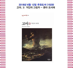 전체 글 썸네일형 리스트형 6월의 추천도서(1930) 고야. 4: 운명 검은그림 - 홋타 요시에 1. 책 소개 고야의 전 생애를 아우르는 고야평전 『고야』제4권 ‘운명 - 검은그림자’편. 일본의 저명한 역사연구자 겸 작가인 홋타 요시에가 화가 고야의 삶을 통해 유럽의 근ㆍ현대상을 생생하게 살펴본다. 저자인 홋타 요시에는 인간, 종교와 예술 전반에 걸친 심오한 이해와 통찰력으로 한 시대의 압도적인 자료를 통해 그 시대의 삶을 생생하게 그려내 왔다. 이 책은 사실에 입각하여 고야의 삶을 객관적이고 치밀하게 탐색한 고야 연구서이다. ‘운명 - 검은그림자’편은 별장 ‘귀머거리의 집’을 구입해 벽에 ‘검은 그림’ 연작을 그리기 시작하고, 동판화집 를 제작한 70대 무렵의 고야 이야기이다. 출처 : 교보문고 2. 저자 홋타 요시에(堀田善衛, 1918~98)는 일본 도야마(富山) 현 다카오카(高岡) 시에서 태어.. 더보기 6월의 추천도서(1929) 고야. 3: 거인의 그림자 - 홋타 요시에 1. 책소개 고야의 전 생애를 아우르는 고야평전 『고야』제3권 ‘거인의 그림자’편. 일본의 저명한 역사연구자 겸 작가인 홋타 요시에가 화가 고야의 삶을 통해 유럽의 근ㆍ현대상을 생생하게 살펴본다. 저자인 홋타 요시에는 인간, 종교와 예술 전반에 걸친 심오한 이해와 통찰력으로 한 시대의 압도적인 자료를 통해 그 시대의 삶을 생생하게 그려내 왔다. 이 책은 사실에 입각하여 고야의 삶을 객관적이고 치밀하게 탐색한 고야 연구서이다. ‘거인의 그림자’편은 전쟁과 민중의 모습을 주제로 한 작품을 주로 제작한 60대 무렵의 고야 이야기이다. 출처 : 교보문고 2. 저자 홋타 요시에(堀田善衛, 1918~98)는 일본 도야마(富山) 현 다카오카(高岡) 시에서 태어나 1942년 게이오 대학 불문학과를 졸업하였다. 그 후 .. 더보기 이전 1 ··· 1407 1408 1409 1410 1411 1412 1413 ··· 2424 다음