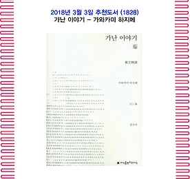 전체 글 썸네일형 리스트형 3월의 추천도서(1828) 가난 이야기 - 가와카미 하지메 1. 책 소개 『가난 이야기』는 ‘어떻게 하면 잘사는가’에 대한 이야기다. 이 책에서 '잘산다는 것'은 비단 물질적인 것만을 의미하는 것이 아니다. 중요한 것은 삶에 대한 우리들의 바른 마음가짐에 있다고 한다. 이에 이 책은 우리들이 살아가야 할 방향을 설정해 주는 기본서이자 지침서의 역할을 한다.출처 : 교보문고 2. 저자 1879년 야마구치 현에서 태어나 도쿄제국대학을 졸업하고, 교토대학 교수로 학생들의 신망을 받았다. 근대 일본 경제학의 전기(轉機)를 마련한 인물이다. 1928년 좌경사상을 유포한다는 이유로 대학 당국의 압력을 받아 교직에서 쫓겨났다. 이후 정치운동에 투신, 1932년 공산당에 입당하여 지하활동을 전개하다가 검거되어 5년 형을 선고받고 1937년까지 옥중생활을 했다. 비전향의 태도를.. 더보기 3월의 추천도서(1827) 책과 연애하는 41가지 방법(경향신문사) - 안철수 , 박원순 , 김제동 외 1. 책 소개 이 책은 2014년과 2015년 경향신문 1면, ‘내 인생의 책’을 통해 연재된 글을 중심으로 묶었다. 필자들은 책읽기의 중요성에 십분 공감하면서 책을 둘러싼 자신의 경험들을 기꺼이 풀어냈다. 단순한 서평을 넘어서 필자들이 책과의 인연으로 인생의 방향을 결정하거나, 책 한 권 때문에 큰 깨달음을 얻는 등 삶의 결정적 순간들과 마주할 수 있다. 신문에서 1면은 사람의 얼굴과 같다. 경향신문은 지난 10년간 하루도 빠짐없이 신문 1면을 할애하여 책 읽는 사회를 위한 독서캠페인을 전개해왔다. 2007년 1월 ‘책읽기 365’를 시작으로 최근의 ‘내 인생의 책’에 이르기까지 문패를 바꿔 달았지만 독자들에게 매일 책 한 권씩 소개해왔다. 책처럼 훌륭한 스승은 없다. 경향신문이 지난 10년간 지속적으.. 더보기 이전 1 ··· 1466 1467 1468 1469 1470 1471 1472 ··· 2423 다음