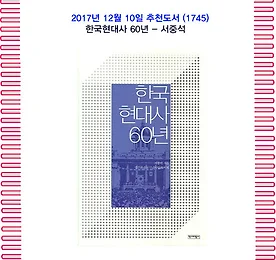 전체 글 썸네일형 리스트형 12월의 추천도서(1747) 한밤의 아이들 - 살만 루슈디 1. 책 소개 유례없는 수상 기록을 세운 인도의 환상 문학! 인도 태생의 환상적 이야기꾼 살만 루슈디의 『한밤의 아이들』 제1권. 세 번의 부커상 수상이라는 유례없는 기록을 세우면서 세계문학사에 유일무이한 사건을 남긴, 신화와 역사, 환상과 현실의 세계를 넘나드는 장편소설이다. 1947년 8월 15일 인도가 독립하는 순간 태어나 초자연적 능력을 지니게 된 1001명의 아이들 중 0시 정각에 태어나 가장 뛰어난 초자연적 능력을 지니게 된 살림 시나이의 서른 해를 그려내고 있다. 인도가 20세기에 경험한 독립과 분열의 역사를 상징하는 살림의 일생을 따라간다. 살림이 회고록을 저술하면서 자신의 연인인 파드마에게 들려주는 형식이다. 책은 모두 30장으로 구성되어 있다. 각 장에 담긴 이야기와 그 제목을 피클공장.. 더보기 12월의 추천도서(1746) 한국현대사 60년 - 서중석 1. 책 소개 건국 60년에 걸친 한국현대사의 흐름 은 대한민국 정부 수립 이후 오늘날까지 약 60년에 걸친 한국현대사의 큰 흐름을 정리한 책이다. 6월민주항쟁 20주년을 기념하기 위해 발간된 것으로, 민주화운동을 중심으로 한국현대사를 서술하고 있다. 40년 동안 한국현대사 연구에 열정적인 노력을 기울여온 서중석 교수가 집필을 맡아, 일반인과 학생들을 위해 짧고 간결하지만 현대사를 관통하는 자유와 저항의 정신을 압축해서 보여준다. 이 책은 민주화운동사가 현대사와 어떠한 관련 속에서 어떻게 전개되었는가를 살펴본다. 민주화운동 20년의 성취와 한 연구자의 40년 동안의 현대사 연구, 그리고 건국 이후 60년의 한국현대사를 종합하고 있다. 아울러 독재 시절을 경험하지 않아 민주주의의 소중함을 절감하기 힘든 세.. 더보기 이전 1 ··· 1508 1509 1510 1511 1512 1513 1514 ··· 2422 다음