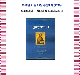 전체 글 썸네일형 리스트형 11월의 추천도서(1728) 필로칼리아 - 성 니코디모스 1. 책 소개 성산의 성 니코디모스와 고린도의 성 마카리오스가 편찬한 『필로칼리아』 제3권. '필로칼리아(Philokalia)'는 4세기부터 15세기까지의 정교회 전통에 속한 영적 대가가 저술한 글을 모은 책으로, 18세기의 그리스도의 수도사인 성산의 성 니코디모스와 고린도의 성 마카리오스에 의해 편집되어 1782년에 베니스에서 초판이 출간된 것이다. 이 책은 그러한 '필로칼리아'의 내용 중 일부를 담아낸 것으로, 관상생활을 실천하는 데 필요한 교훈과 지침을 전달한다. 아울러 영적인 길로 나아가는 깨끗한 마음의 의식을 인식하도록 인도하고 있다. 양장본. 2. 목차 1. 독수도사 성 이사야 지성을 지키는 것에 관하여 2. 독수도사 에바그리오수 독거생활의 고요와 금욕에 대한 가르침 정념 그리고 생각을 분별하.. 더보기 11월의 추천도서(1727) 핀볼효과 - 제임스 버크 1. 책 소개 ‘핀볼효과(The Pinball Effect)’는, 주식시장에서는 주가를 결정하는 경제성장률, 유동성, 금리, 투자심리 등의 요인이 복합적으로 작용을 미쳐 주가를 크게 오르도록 만드는 것을 가리킨다. 이 의미를 역사적인 차원에서 살펴보면, 사소한 사건이나 물건 등이 우연한 부딪침을 통해 세상을 변화시키는 요인이 되는 현상을 말한다. 『핀볼효과』는 복잡한 과학사에서 연관성이 희박한 사소한 사건들을 연결하여 기술사의 발전 과정에 숨어 있는 근원을 추적해 그 관계를 명쾌하게 파헤친 책이다. 2. 저자 3. 본문내용 1) 이 책을 활용하는 방법 2) 서문 3) 차례 4) 주요내용 참고자료 : 일본의 도자기 산업 발전과 유럽 수출 배경 더보기 이전 1 ··· 1518 1519 1520 1521 1522 1523 1524 ··· 2422 다음
