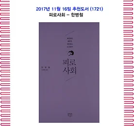 전체 글 썸네일형 리스트형 11월의 추천도서(1722) 피상성 예찬 -빌렘 플루서 1. 책 소개 컴퓨터 그림의 현상을 '피상성'으로 간주하고, 이를 심도 있게 분석한 책. 저자는 빌렌도르프의 비너스상에서 시작해 라스코 동굴벽화, 우가리트 쐐기문자 그리고 최근의 컴퓨터 그림에 상응하는 세계들을 역사적으로 조명하면서 이 세계들의 의미를 현상한다. 또한 회화의 미술적 사고에서 텍스트의 논리적 사고를 거쳐 황당무계한 컴퓨터 사고에 이르는 매체 사상의 큰 조류를 아직까지 볼 수 없었던 독특한 시각에서 통찰하고 있다. 2. 저자 빌렘 플루서 빌렘 플루서 1920년에 태어났으며 1991년 교통사고로 타계했다. “지식인들 중의 이 무정부주의자”(Di ePresse, Wien)인 이 프라하의 유태인은 1940년 런던을 거쳐 브라질의 상파울로로 이주해 1970년대 초까지 거기서 저널리스트로, 또한 커뮤.. 더보기 11월의 추천도서(1721) 피로사회 - 한병철 1. 책 소개 성과사회는 우울증환자와 낙오자를 만들어낸다!『피로사회』는 현대사회의 성과주의에 대하여 날카롭게 비판한 책으로, 독일의 주요 언론 매체가 주목한 재독 철학자 한병철 교수의 성찰을 담아냈다. 이 책에서 저자는 현대사회의 패러다임 전환을 예리하게 포착한다. 냉전, 면역학, 규율사회 등 적대성 내지 부정성을 바탕으로 한 과거의 사회에서 현재는 부정성이 제거되고 긍정성이 지배하는 사회로 변화했다. 그는 이 새로운 사회를 성과사회, 그리고 이 사회 속에 살고 있는 인간을 성과주체라고 말한다. 이 책은 성과사회의 과잉활동, 과잉자극에 맞서 사색적 삶, 영감을 주는 무위와 심심함, 휴식의 가치를 역설하며, 이러한 관점에서 ‘피로’의 개념에 대하여 새로운 시각을 제공한다. 2. 저자 저자 한병철은 고려대학.. 더보기 이전 1 ··· 1521 1522 1523 1524 1525 1526 1527 ··· 2422 다음