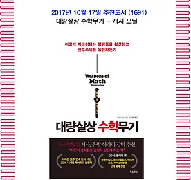 분류 전체보기 썸네일형 리스트형 10월의 추천도서(1692) 앙겔라 메르켈 - 매슈 크보트럽 1. 책 소개 이 전기는 앙겔라 메르켈이 전혀 알려지지 않았던 무명 정치인에서 세계에서 가장 영향력 있는 지도자로 우뚝 서기까지의 과정을 흥미진진한 이야기로 풀어낸다. 저자 매슈 크보트럽은 지금껏 영어권에서 인용되지 않았던 독일어 자료와 기록보관서 서류까지 검토하며 자료들을 수집해 메르켈의 개인적 이야기와 제2차 세계대전 이후 독일의 역사를 생동감 있게 엮어냈다. 특히 메르켈 특유의 성격과 비전을 참신한 시선으로 바라보면서 그녀와 또 그녀의 여성 참모들이 어떻게 보수적인 남성 정치인들을 압도할 수 있었는지를 보여준다. 2. 저자 저자 매슈 크보트럽은 정치학자이자 영국 코벤트리대학 정치학과 교수다. 옥스퍼드대학 브래스노스칼리지에서 정치학 박사학위를 받고 36세의 나이에 정교수로 임용되었다. 현재 런던에 거.. 더보기 10월의 추천도서(1691) 대량살상 수학무기 - 캐시 오닐 1. 책 소개 2. 저자 저자 캐시 오닐(Cathy O’Neil)은 UC버클리를 졸업하고 1999년 하버드대학교에서 대수적 정수론으로 수학박사 학위를 받았다. 매사추세츠공과대학교(MIT)에서 박사후과정을 거친 후 컬럼비아대학교와 공동학위를 수여하는 버나드 칼리지 수학과 종신교수로 재직했다. 2007년 수학을 현실 세계에 활용한다는 아이디어에 매료되어 교수직을 버리고, 헤지펀드 디이 쇼(D.E. Shaw)의 퀀트(quant)가 된다. 디이 쇼의 선물거래팀을 이끌며 2000년대 글로벌 금융계의 호황과 붕괴를 몸소 겪는다. 수학과 금융의 결탁이 불러온 파괴적 힘에 환멸을 느끼고 월스트리트를 떠났다. 이후 IT업계에서 데이터과학자로서 금융상품의 위험도, 소비자 구매 패턴 등을 예측하는 수학 모형을 개발했다. 수.. 더보기 10월의 추천 도서 (1690) 페테르부르크 - 안드레이 벨르이 1. 책 소개 러시아의 대표적 상징주의 작가, 안드레이 벨르이 장편소설. 은유와 환유, 반복과 전위, 라이트모티브 등의 독특한 문체로 서술된 실험소설의 전형을 보여준다. 또한, 니체ㆍ베르그송ㆍ슈타이너 등 20세기 초 철학자들의 사상과 역사관이 투영되는 등 러시아 상징주의 특유의 철학적 사색이 내포되어 작품의 깊이를 더한다. 소설은 제1차 러시아 혁명 직후인 1905년 10월, 제국의 수도 상트-페테르부르크를 시ㆍ공간적 배경으로 하여 러시아의 사회와 역사를 기록한다. 혁명과 전쟁이라는 역사적 소용돌이 속에 휩싸여 종말을 눈앞에 두고 있는 페테르부르크를 통해 러시아 민족의 정체성에 관한 문제를 중심 테마로 다루고 있다. 2. 저자 안드레이 벨르이 러시아의 상징주의 시인이자 소설가, 문학이론가이자 상징주의 철.. 더보기 10월의 추천 도서 (1689) 페스트 - 알베르 카뮈 1. 책 소개 극한의 절망 속에서도 억누를 수 없는 희망의 의지!20세기 실존주의 문학의 대표 작가 알베르 카뮈의 소설 『페스트』. '페스트'라는 비극적인 현실 속에서 의연히 운명과 대결하는 인간의 모습을 그린 이 작품은 20세기 문학이 남긴 기념비적인 고전으로 꼽힌다. 무서운 전염병이 휩쓴 폐쇄된 도시에서 재앙에 대응하는 사람들의 각기 다른 모습이 묘사된다. 인물들은 재앙에 대처하는 서로 다른 태도를 드러내 보인다. 그들의 모습을 통해 절망과 맞서는 것은 결국 행복에 대한 의지이며, 잔혹한 현실과 죽음 앞에서도 희망을 놓지 않는 것이야말로 이 부조리한 세상에 대한 진정한 반항임을 이야기한다. 2. 저자 저자 알베르 카뮈는 1913년 알제리 몽드비에서 출생하였다. 당시 알제리는 프랑스의 식민지 였다. 농.. 더보기 10월의 추천 도서 (1688) 페미니즘의 도전 - 정희진 1. 책 소개 ‘남성 언어’로 길들여진 세상에 문제를 제기하다!한국 사회 일상의 성정치학『페미니즘의 도전』. 이 책은 여성학자인 정희진이 ‘여성의 눈’으로 우리 사회를 다시 보도록 안내한 책이다. 가정폭력, 성과 섹스의 문제, 성판매 여성 문제, 군사주의 문제, 동성애 등 사회적으로 논란이 된 여러 이슈와 사건들을 재해석한다. 저자는 페미니즘은 투쟁과 쟁취가 아닌 협상과 사유, 공존과 상생의 길이라는 것을 강조한다. 여성과 장애인, 외국인 노동자, 성 판매 여성 등 오랫동안 소외당해 온 우리 사회의 ‘다른 목소리’들이 서로 경쟁하고 소통하고 공존하는 세상을 꿈꾸며, 찬성이냐 반대냐 하는 이분법적 시각을 넘어 새로운 목소리로 소통과 공존을 이야기한다. 2. 저자 저자 정희진은 여성학, 평화학 연구자. 다(.. 더보기 이전 1 ··· 613 614 615 616 617 618 619 ··· 969 다음