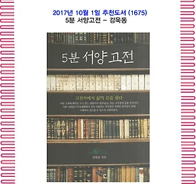 분류 전체보기 썸네일형 리스트형 10월의 추천 도서 (1677) 파한집 - 이인로 1. 책 소개 3권 1책. 목판본. 이 책은 저자가 69세로 사망하기 직전에 지은 것이다. 이인로의 사후 40년 뒤인 1260년(원종 1) 3월에 아들 세황(世黃)이 수집하고 안렴사(按廉使) 대원왕공(大原王公)의 후원으로 초간되었다. 현재 당시의 초간본은 전하지 않는다. 1659년(효종 10)에 엄정구(嚴鼎耉)가 경주부윤 재임 중에 조속(趙涑)의 가장비본(家藏秘本)을 가지고 각판(刻板)한 중간본이 남아 있다. ≪파한집≫의 권 상은 시평(詩評) 12조(條), 서필담(書筆談) 1조, 수필 7조, 시화(詩話) 1조, 문담(文談) 2조, 기행문 1조, 권 중은 시평 13조, 수필 13조, 권하는 시평 15조, 수필 18조 등의 도합 83조가 수록되어 있다. ≪파한집≫의 ‘파한(破閑)’이란 글자 그대로 한가함을 .. 더보기 10월의 추천 도서 (1676) 파인만의 물리학 강의 - 리처드 파인만 1. 책 소개 아인슈타인 이후 최고의 천재로 평가되는 미국의 물리학자 리처드 파인만의 물리학 강의 양장본. 1961~1962년에 캘리포니아 공과대학(칼텍)의 1, 2학년생들을 대상으로 했던 강의의 내용을 정리한 책으로 자연 현상을 이해하는 도구로서 물리학이 필수적이라는 인식에서 시작되어 '물리의 숨은 묘미'를 충분히 느낄 수 있다. 수학이나 전문 용어를 어지럽게 늘어놓지 않고 지극히 일상적인 사례들로부터 최첨단의 물리 개념을 자연스럽게 이끌어 내며, 사물의 원리에 대한 통찰을 담고, 정규 과정을 뛰어넘는 현대 물리학의 핵심을 다루고 있다. 이 책의 저자 리처드 파인만은 1965년에 양자전기역학 이론을 수정, QED를 완성하여 줄리언 슈윙거, 도모나가 신이치로와 함께 노벨물리학상을 수상했다. 2. 저자 리.. 더보기 10월의 추천 도서 (1675) 5분 서양고전 - 김욱동 1. 책 소개 서양고전을 통해 만나는 삶의 길! 고전 속에서 삶의 길을 찾다『5분 서양고전』. 서양 고전을 다수 번역한 저자가 고전에서 뽑은 성구나 고사성어를 쉽게 풀어 소개한 책이다. 서양 고전에 뿌리를 두는 고사성어 등을 선별하여 수록하고, 서양 사람들이 일상생활에서 자주 사용하는 표현을 쉽게 이해하고 접근하도록 이야기처럼 재미있게 풀어낸 설명을 덧붙였다. 고대 편, 그리고 중세와 르네상스 편, 근대와 현대 편으로 나누어져 있다. 고전 속에서 삶의 길을 찾도록 인도한다. 2. 저자 김욱동 경기도 인천에서 태어나 한국외국어대학 영문과와 동 대학원을 졸업한 뒤 미국 미시시피대학교와 뉴욕주립대학교에서 영문학 석사학위와 학사학위를 받았다. 서강대학교 영문학과 교수를 거쳐 지금은 서강대 명예교수와 한국외대 통.. 더보기 청소년 · 대학생 · 일반인을 위한 추천도서 (56) (2017. 10) 더보기 9월의 추천 도서 (1674) 파이돈 - 플라톤 1. 책 소개 『파이돈』은 플라톤의 철학적 걸작이자 고대 그리스 산문문학의 정점 중의 하나로 손꼽힌다. 특히 이 작품은 소크라테스가 그의 벗들과 나눈 마지막 철학적 대화와 그의 죽음을 그리고 있는 것으로 유명하다. 소크라테스의 죽음이라는 엄중한 극적 상황을 배경으로 선택함으로써, 플라톤은 소크라테스가 행한 것들과 이야기한 것들에 특별한 중요성과 무게를 부여하고 있다. 2. 저자 플라톤 플라톤(기원전 427~347)은 기원전 427년경 그리스 아테네에서 태어난 철학자이다. 플라톤은 유명한 펠로폰네소스 전쟁이 시작된 지 4년째 되는 해에 태어났으며, 전쟁은 기원전 404년에 아테네의 패배로 끝났으므로 전쟁 속에서 태어나 전쟁 속에서 성장하여 성인이 된다. 그는 맹목적인 삶보다는 의미를 부여할 수 있는 삶이 .. 더보기 이전 1 ··· 616 617 618 619 620 621 622 ··· 969 다음