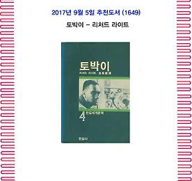 분류 전체보기 썸네일형 리스트형 9월의 추천 도서(1653) 톰 존스 - 헨리 필딩 1. 책 소개 근대 소설의 형식을 확립한 명작 초기 영문 소설문학을 대표하는 헨리 필딩의 장편소설 『톰 존스』제2권 완결편. 치밀하고 정교한 건축학적 구성미, 활기찬 유머와 풍자, 무수히 등장하는 인물 군상, 파노라마처럼 펼쳐지는 끝없는 이야기로 근대 소설의 형식을 확립한 기념비적 소설이라 칭해지고 있다. 소설가 서머싯 몸이 '세계 10대 소설' 가운데 하나로 선정한 세계 문학의 고전이자, 성작문학의 걸작으로 영미권 대학생들의 필독서이며, 1964년도 아카데미 4개 부문 수상 영화 과 BBC 6부작 드라마의 원작으로도 유명하다. 총 18권 208장으로 구성되어 있고, 우리말 번역 원고가 총 6,200매에 달하는 방대한 분량이지만 줄거리 자체는 간단하다. 갓 태어난 업둥이 톰이 포대기에 싸인 채 올워디라는.. 더보기 9월의 추천 도서(1652) 톰 아저씨의 오두막- 헤리엇 스토 노예제를 향한 지성과 양심의 절규. 남북전쟁의 원인이 된 위대한 항의 소설. 미국 국민들의 양심에 호소하여 남북전쟁을 촉발시킨 소설 『톰 아저씨의 오두막』은 노예무역으로 팔려온 아프리카 흑인들이 미국 땅에서 겪는 참상을 작가 자신의 실제 경험에 비추어 세세하게 묘사한다. 노예제의 참상에 대해 접한 후 사회의 부조리에 눈뜬 해리엇 비처 스토는 노예의 도망을 도와준 사람을 처벌할 수 있도록 한 '도망노예법'이 미국 의회에서 통과되자 이에 항의하는 소설을 쓰기로 결심한다. 저자는 노예였던 과거에서 벗어나 북부에서 활동하던 흑인 목사 조시아 헨슨을 모델로 '톰 아저씨'라는 인물을 창조한다. 자상하고 관대한 주인 부부 덕분에 별다른 걱정 없이 생활하던 톰 아저씨는 주인집의 경제적 사정이 어려워지자 팔려갈 위기에 .. 더보기 9월의 추천 도서(1651) 톰소여의 모험- 마크 트웨인 저 : 마크 트웨인 Mark Twain,본명:새뮤얼 랭혼 클레멘스, Samuel Langhorne Clemens본명은 새뮤얼 클레멘스(Samuel Langhorne Clemens)이다. 미주리주에서 가난한 개척민의 아들로 태어났다. 4세 때 가족을 따라 미시시피 강가의 해니벌로 이사왔으며, 12세 때 아버지를 여의었다. 그 후 인쇄소의 견습공이 되어 일을 배우고, 각지를 전전하였다. 1857년 미시시피강의 수로안내인이 되었는데, 해니벌로 이사한 뒤부터 이 시기까지의 생활과 경험은 후일 작가 형성에 큰 영향을 주었다. 그의 필명인 마크 트웨인은 강의 뱃사람 용어로 안전수역을 나타내는 '두 길'(한 길은 6피트)을 뜻한다. 1861년에 남북전쟁이 터져 수로안내인 일자리를 잃고 남군에 들어갔으나 2주일 만에 .. 더보기 9월의 추천 도서(1650) 토지- 박경리 박경리는 『토지』의 작가로 불린다. 『토지』는 한국문학사의 기념비적인 작품이다. 『토지』는 1969년에서 1994년까지 26년 동안 집필되었으며, 그 크기만 해도 200자 원고지 4만여 장에 이르는 방대한 분량이다. 구한말에서 일제 강점기를 거쳐 해방에 이르기까지의 무수한 역사적 사건과 민중들의 삶이 고스란히 『토지』에 담겨 있다. 『토지』는 한마디로 “소설로 쓴 한국근대사”라 할 수 있다. 『토지』에는 평사리의 대지주인 최참판댁의 흥망성쇠를 중심으로 동학혁명, 식민지시대, 해방에 이르기까지 우리 민족의 한 많은 근현대사가 폭넓게 그려져 있다. 당시 사회의 모든 계층을 아우르는 인물들과 반세기에 걸친 장대한 서사, 그리고 참다운 삶에 대한 끊임없는 탐구 등은 작가의 생생하고 아름다운 문체를 만나 한국문학.. 더보기 9월의 추천 도서(1649)토박이- 리처드 라이트 1. 책 소개 미국의 흑인작가 리차드 라이트의 대표적 장편으로 1940년에 발표된 이래 여러 차례 연극과 영화로 각색되어 숱한 화제를 남긴 작품. 한 흑인청년이 백인 처녀를 살해한 사건을 통해 미국사회의 구조적 모순이 집약된 도시 하층민·흑인들의 삶을 응축하여 보여주는 이 작품은 긴박감 넘치는 극적 재미에다 탁월한 구성과 주제의식이 살아있다. 2. 저자 리처드 라이트는 가난한 미시시피의 소작농 집안에서 태어났는데, 그가 5살 되던 해 아버지로부터 가족이 버림받았다. 라이트는 중학교까지밖에 교육을 받지 못했음에도 불구하고 최초로 일반 독자에게 다가간 아프리카 계 미국인 소설가였다. 그의 어려웠던 어린 시절은 최고작 중 하나인 《흑인 소년(Black Boy)》(1945)에 묘사되어 있다. 훗날 그는 인종 차.. 더보기 이전 1 ··· 621 622 623 624 625 626 627 ··· 969 다음
