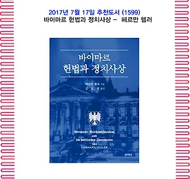 분류 전체보기 썸네일형 리스트형 7월의 추천 도서(1599) 바이마르 헌법과 정치사상 - 헤르만 헬러 1. 책 소개 『바이마르 헌법과 정치사상』은 헤르만 헬러의 중요 저작과 논설을 번역하여 옮긴 것으로 독일 현대 정치학, 나치스에 대항한 이론적 토대 등을 만날 수 있다. 이 책을 통해 바이마르 헌법과 민주주의 대한 헬러의 강력한 신념과 의지, 법치국가와 독재 사이에서 고뇌를 엿본다. 또한 내란과 독재를 피하고 독일을 국민의 국가로서 재생시키기 위한 고민과 노력의 흔적 역시 확인할 수 있을 것이다. 2. 저자 소개 저자 헤르만 헬러 Hermann Heller는 킬 대학 사강사. 라이프치히시 성인교육국장. 1927년 『주권론』의 출판으로 당시 이미 이름을 떨치던 카를 슈미트, 한스 켈젠, 루돌프 스멘트와 함께 제1급의 공법학자이자 정치학자로서의 반열에 오른다. 베를린 대학 조교수(1928~1932), 이어서.. 더보기 7월의 추천 도서(1598) 충성과 반역 - 마루야마 마사오 1. 책소개 바쿠한 (幕藩)체제의 해체기부터 메이지국가의 완성에이르는 시기를 대상으로 역사에 나타난 충성과 반역의문제를 다룬 책. 바쿠후 말기 시좌의 변혁:사쿠마 쇼 오잔의 경우, 개국, 근대 일본사상사에서 국가이성의 문제, 역사의식의 고층 등 8개 장으로 설명했다 2. 저자 마류야마 마사오 1922년 도쿄에서 출생한 저자는 1942년 하버드대학 철학과를 졸업했다. 일본으로 돌아온 그는 1946년『思想の科學』의 창간을 주도했다. 그 후 아카데미즘 틀에 얽매이지 않고 대중문화를 독자적인 시각으로 관찰하면서 일본인의 사고방식의 비합리성을 계속하여 비판하고 있다. 주요 저서로는『미국철학』,『야나기 무네요시』,『한계예술론』,『전후일본의 대중문화사』,『鶴見俊輔集』(正?續17卷, 筑摩書房) 등이 있다. 3. 목차 .. 더보기 7월의 추천 도서(1597) 충만한 힘 - 파블로 네루다 1. 책 소개 노벨문학상 수상 시인, 파블로 네루다의 시집 사랑과 열정의 시인 파블로 네루다가 만년에 쓴 시집『충만한 힘』. 독재가 곤살레스 비델라의 정권이 무너진 뒤, 네루다가 1953년 칠레로 돌아와 십여 년간 산티아고 해안가의 작은 섬에서 휴식을 취하는 동안에 쓴 시들을 묶은 것이다. 달콤한 언어와 풍부한 상상력으로 세상의 모든 존재들에게 말을 거는 네루다의 소박한 이웃에 대한 사랑, 자연에 대한 경의, 시인으로서의 각성 등을 동시에 느낄 수 있다. 《민중》은 1962년 칠레 공산당대회에 공산당 중앙위원으로 참석한 네루다가 공식행사의 하나로 낭독한 것으로, 인간의 연대에 대한 그의 입장을 요약하고 있다. 칠레의 과거와 현재의 노동자들을 묘사한 이 시는 그의 후기 작품들 중 가장 뛰어난 작품으로 평가.. 더보기 7월의 추천 도서(1596) 이준 선생전 / 영웅(16.7) / 순국(308호) - 유자후/이금남/이기항 더보기 7월의 추천 도서(1595) 춘향전 (남원고사 南原古詞) - 작자미상 1. 책 소개 《춘향전》의 이본인 《남원고사》를 현대 한글로 번역한 책. 이 책은 19세기에 국문으로 필사되어 서울 누동, 오늘날 종로구 와룡동과 묘동에 걸친 지역의 세책점에서 빌려 주던 소설 《남원고사》를 현대어로 옮기고 해설을 보탰다. 당대에 유행한 시조나 잡가, 민요, 한시, 가사, 소설 등의 일부나 전문과 함께 차림새, 실내 장식, 놀이, 유행어 같은 문화 정보를 풍성하게 담은 이 책은 3ㆍ4조 또는 4ㆍ4조 운율이 살아있어 지루하지 않게 그리고 해학성을 담아 웃게 한다. 2. 목차 머리말 1 꽃 속에 잠든 나비 자취소리에 펄펄 날고 천지에 가득한 봄빛|남원에 온 이 도령|이 도령의 복색치레|남원의 산천 경치|그네 뛰는 춘향|방자와 춘향|첫 만남|불망기|사랑가|춘향 생각|춘향 집 찾아가기 * 《남.. 더보기 이전 1 ··· 632 633 634 635 636 637 638 ··· 969 다음