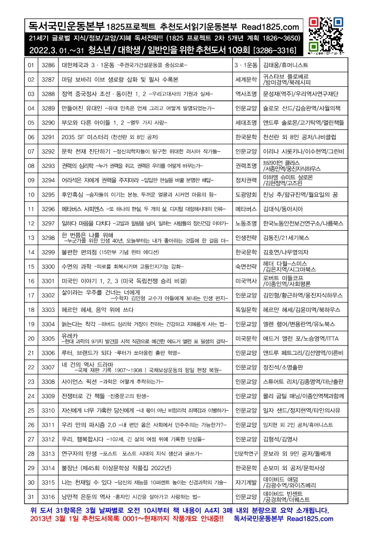 | 청소년 · 대학생 · 일반인을 위한 추천도서 (110) (2022.4) (0) | 2022.04.01 |