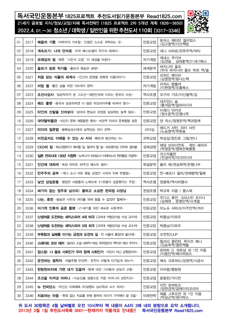 청소년 · 대학생 · 일반인을 위한 추천도서 (111) (2022.5) (0) | 2022.05.01 |