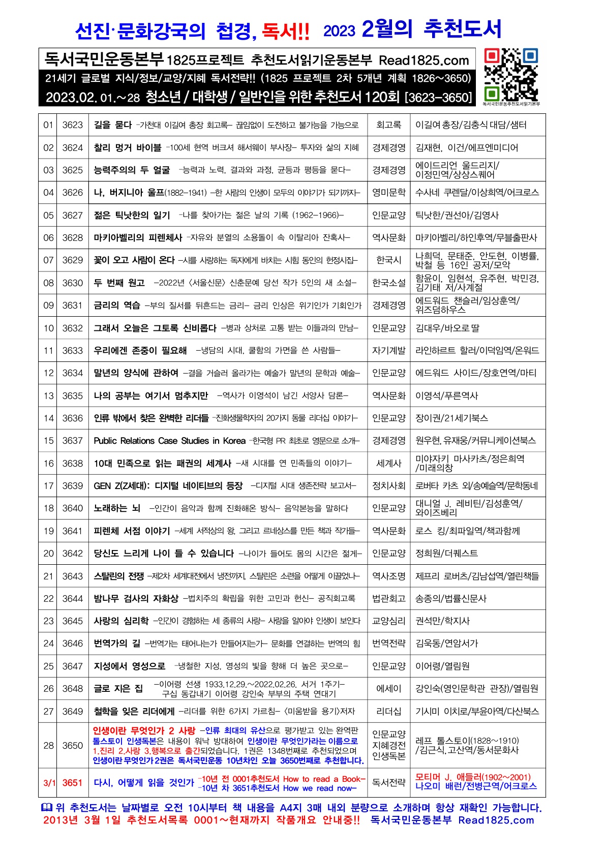 | 청소년 · 대학생 · 일반인을 위한 추천도서 (121) (2023.03) (1) | 2023.03.01 |