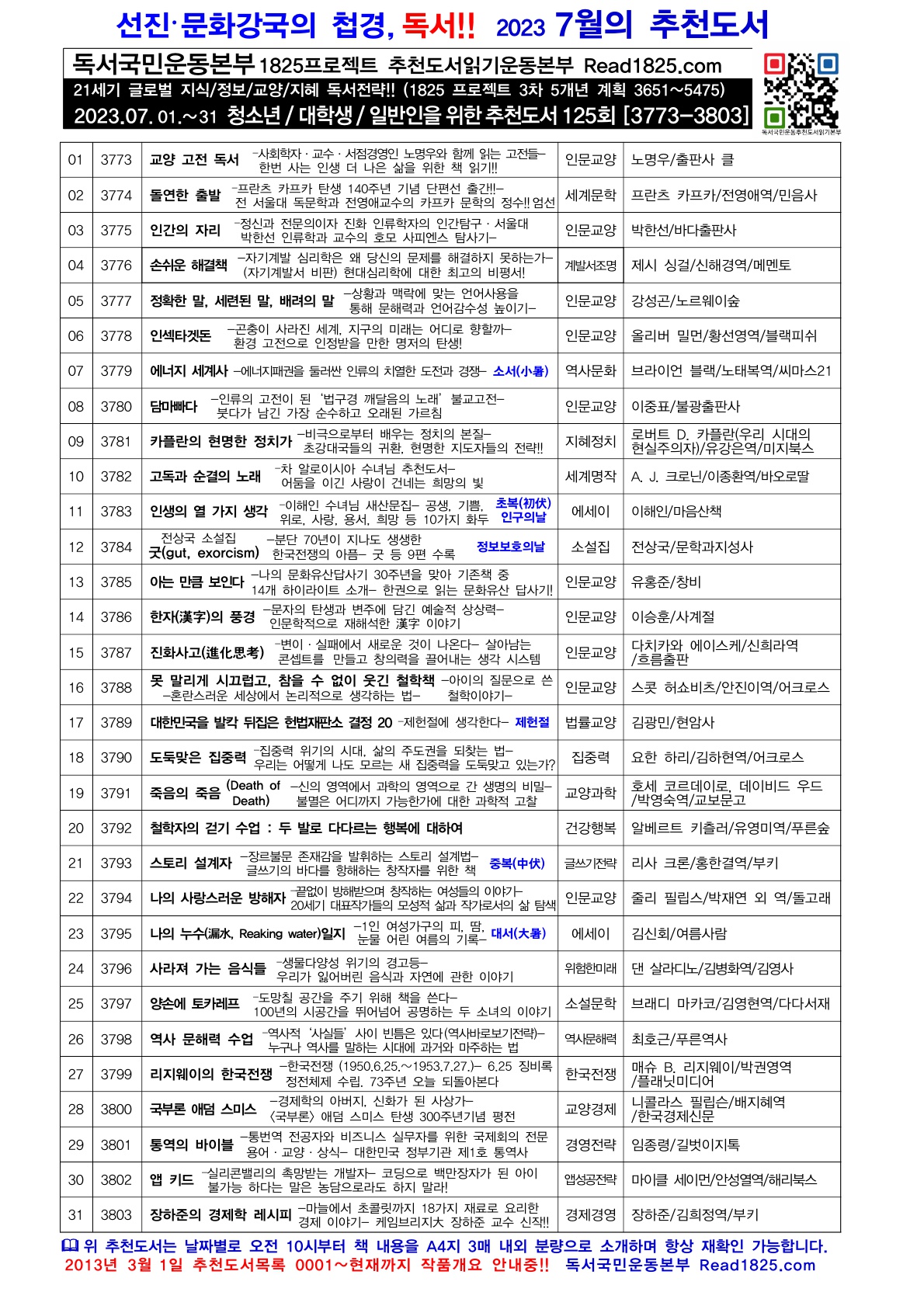 | 청소년 · 대학생 · 일반인을 위한 추천도서 (126) (2023.08) (0) | 2023.08.01 |
