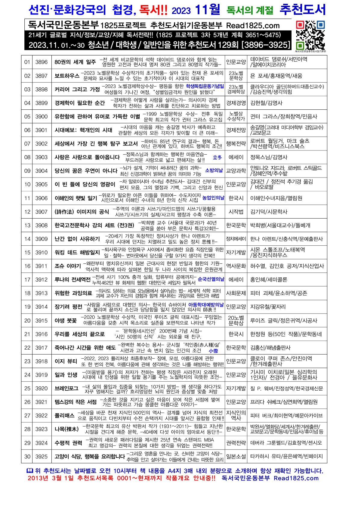 | 청소년 · 대학생 · 일반인을 위한 추천도서 (130) (2023.12) (0) | 2023.12.01 |