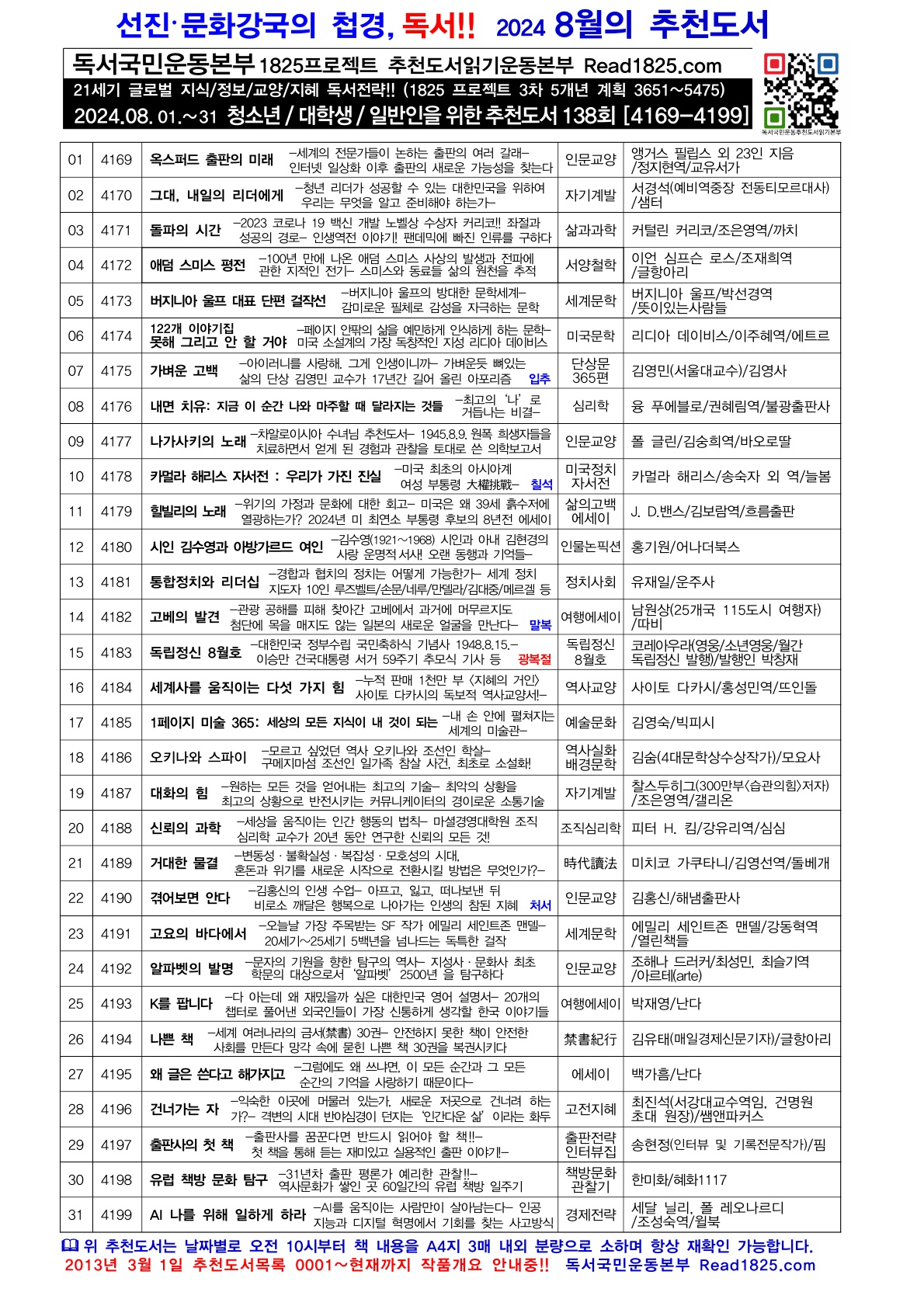 | 청소년 · 대학생 · 일반인을 위한 추천도서 (139) (2024.09) (0) | 2024.09.01 |
