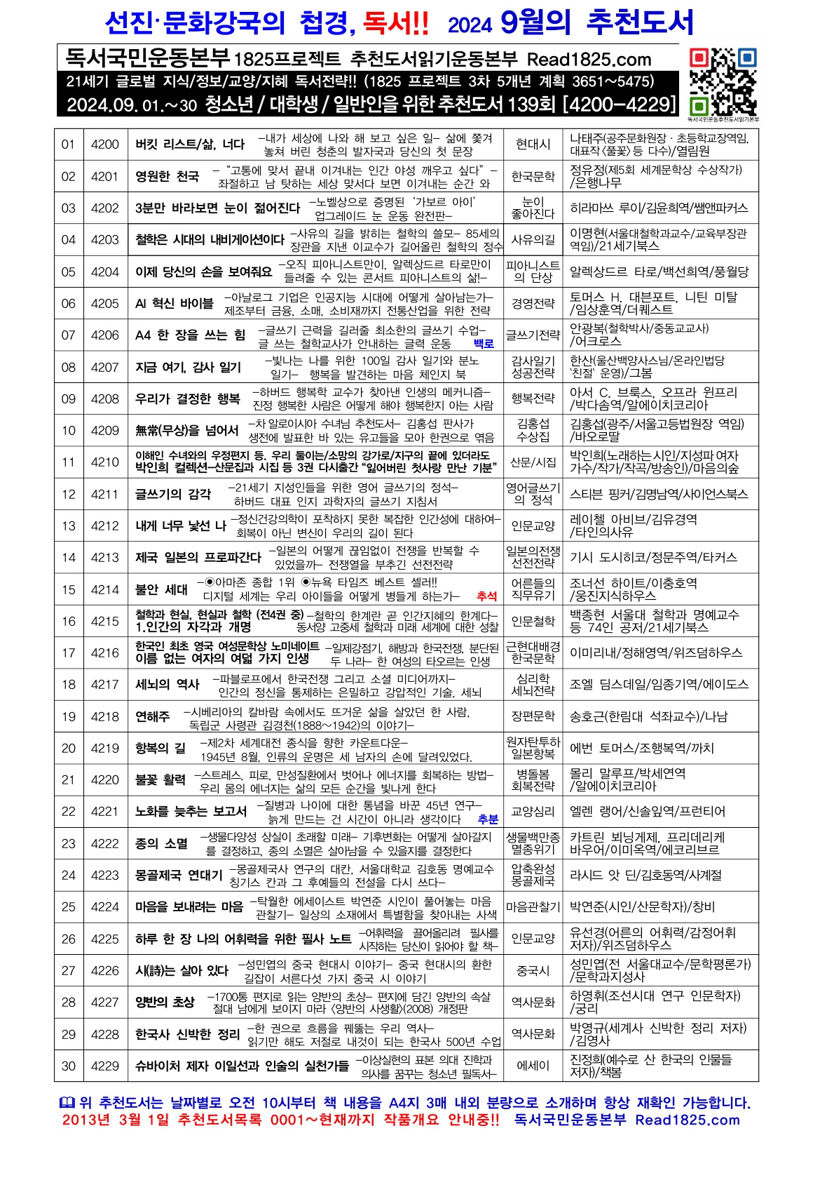 | 청소년 · 대학생 · 일반인을 위한 추천도서 (140) (2024.10) (0) | 2024.10.01 |
