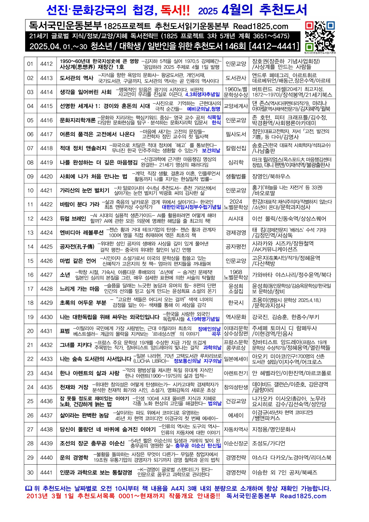 청소년 · 대학생 · 일반인을 위한 추천도서 (146) (2025.04)