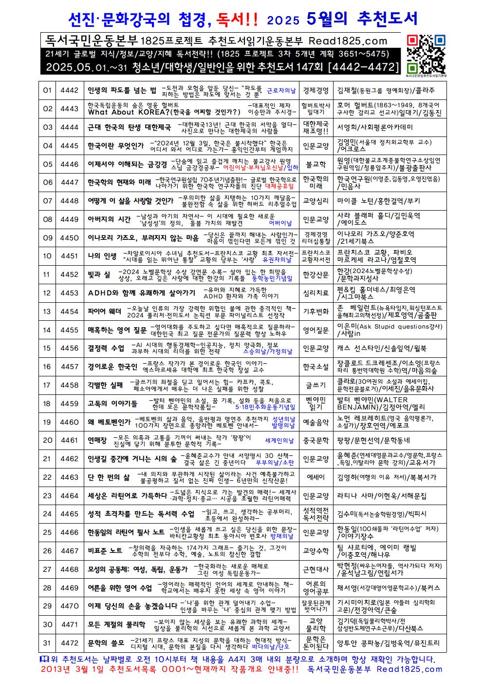 | 5월의 추천도서 (4443) What About KOREA? (1) | 2025.05.02 |