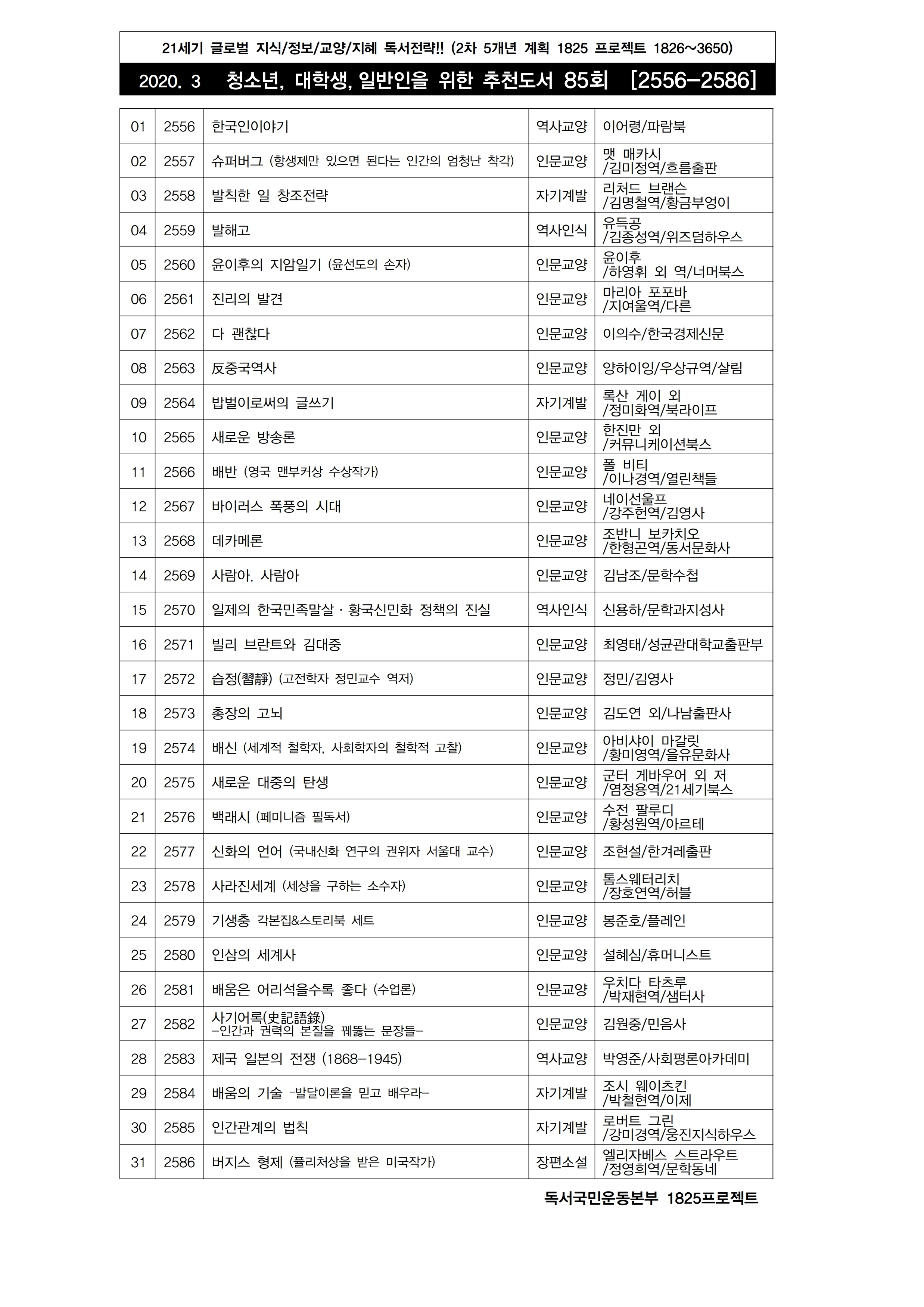 | 청소년 · 대학생 · 일반인을 위한 추천도서 (83) (2020.1) (0) | 2020.02.26 |