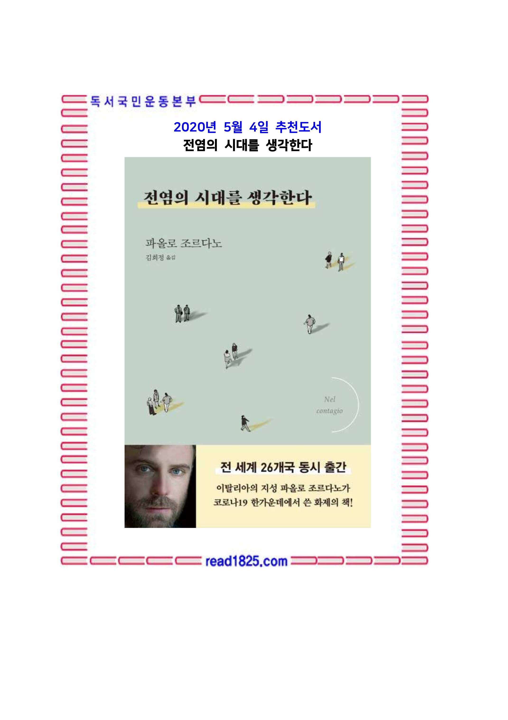 파올로 조르다노는 코로나19로 가장 심각한 타격을 입고 있는 이탈리아 한가운데 있지만, 소설가의 무한한 사유와 과학자의 엄정한 시선으로 새로운 전염병이 불러온 현상을 예리하게 파고들었다. 그는 지금을 ‘전염의 시대’라고 진단한다. 그리고 덧붙인다. “이 전염의 시기가 폭로하는 우리 자신에 대해 귀를 막고 싶지 않다”고. 그는 이 이례적인 사태 앞에서 허무와 고통만을 느낄 게 아니라 우리가 왜 오늘에 이르렀는지 현상 이면을 섬세하게 읽어내야 한다고 말한다. 그 이유는 비단 죽음에 대한 공포 때문만은 아니다. 현재 벌어지는 일은 우연한 사고도, 천재지변도, 새로운 것도 전혀 아니며, 과거에 이미 발생했고 앞으로 또 다시 벌어질 일이기 때문이다.