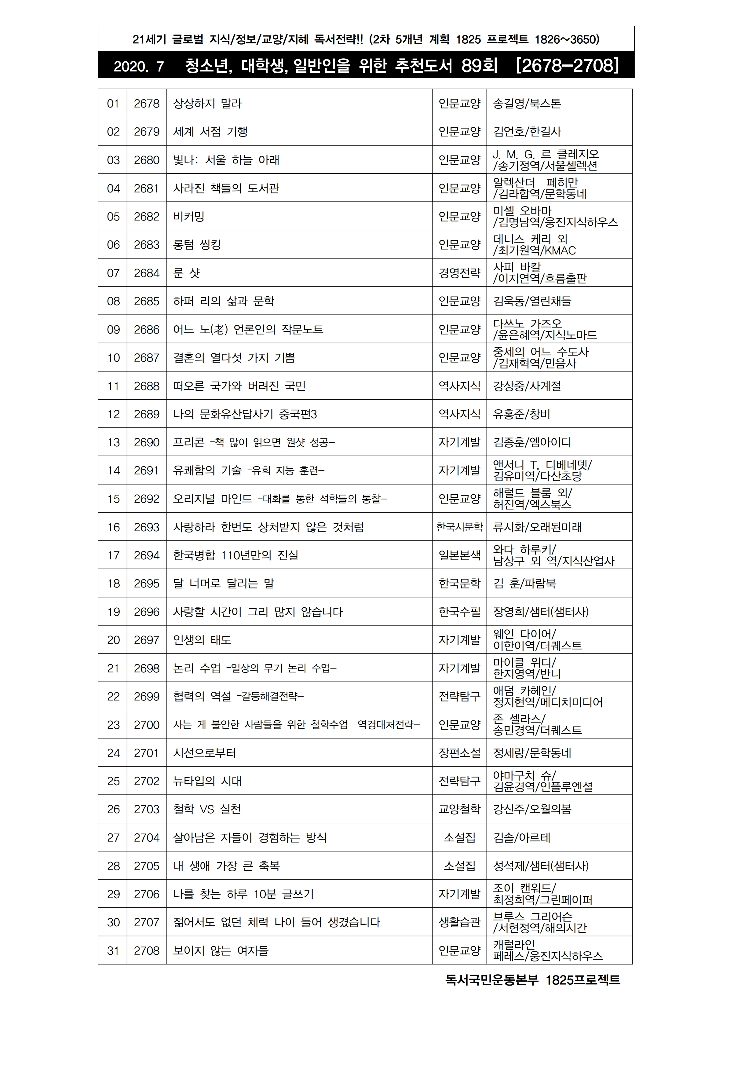 | 청소년 · 대학생 · 일반인을 위한 추천도서 (90) (2020.8) (0) | 2020.08.01 |