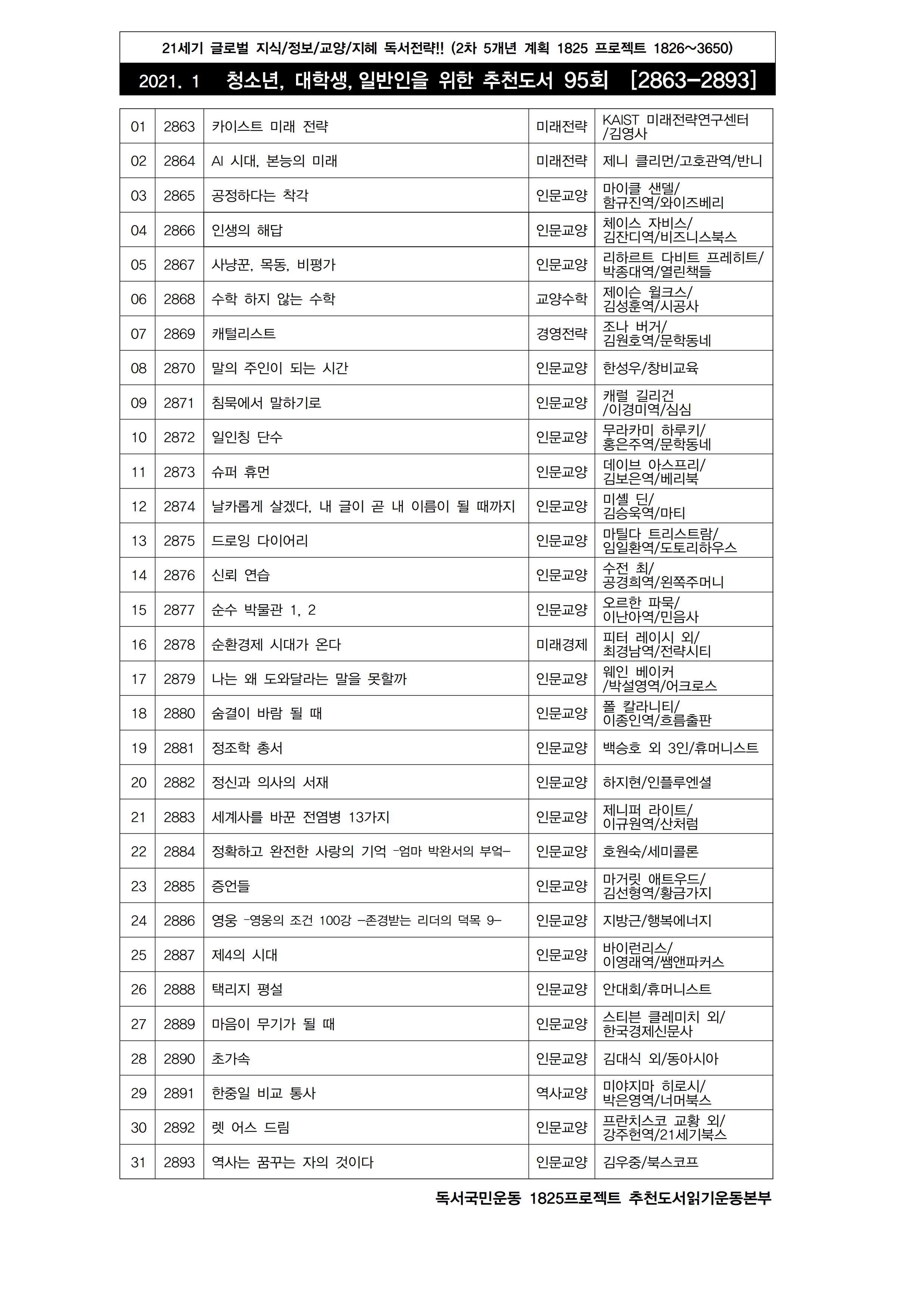 | 청소년 · 대학생 · 일반인을 위한 추천도서 (96) (2021.2) (0) | 2021.02.01 |
