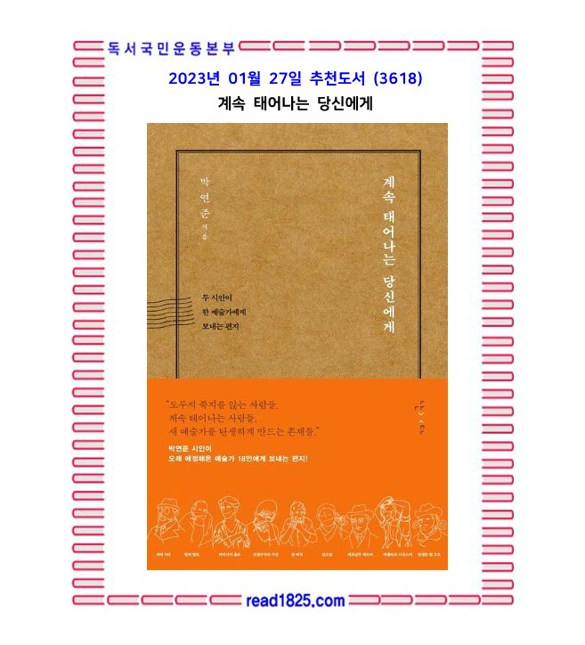 책의 제목 ‘계속 태어나는 당신에게’는 박연준 시인이 김소월 시인에게 쓴 편지의 한 구절에서 착안했습니다. 이 세상을 떠난 이들은 그들을 추억하는 이들의 마음속에서 다시 태어납니다. 그렇다면 다시 태어나는 이들 중에서도 유독 끊임없이 태어나는 이는 누구보다도 예술가일지도 모릅니다. 그들이 세상에 남겨놓은 그림, 노래, 책, 건축물, 영화, 시로 그들은 다시 태어나니까요. 그뿐인가요. 그들을 추억하고, 그들의 작품을 감상하고, 그것에 영감을 받아 새로운 것을 창작해내는 이들의 몸짓 속에서도 그들은 다시 태어납니다. 그렇게 한 예술가는 수많은 예술가들로 다시 태어납니다. 김소월이라는 한 명의 시인은 그의 시를 읽으며 자란 수많은 김소월들로 다시 태어납니다. 소월에게 당신 시처럼 슬픔이 가득한 시만을 써왔다며 스스로를 ‘소월 클럽’의 정식 회원이라고 밝힌 박연준 시인처럼 말이지요.