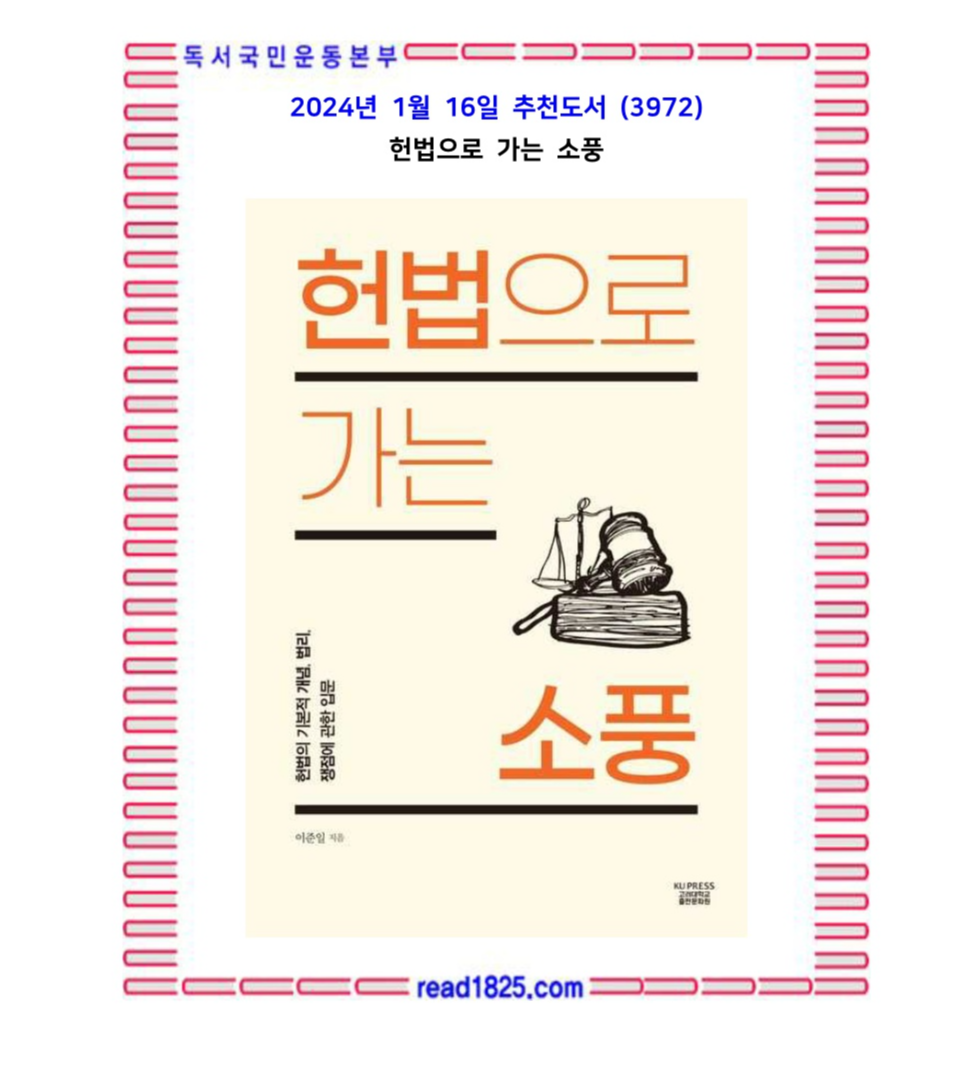 헌법의 중요한 개념, 법리, 쟁점을 이해하기 쉽게, 그러면서도 학술적 수준을 유지하며 20가지 주제로 서술한 책. 이 책은 로스쿨이나 법대 지원자 또는 재학생은 물론 관심이 있는 일반인이 헌법에 접근할 수 있는 입문서이자 교양서로서의 성격을 두루 갖추고 있다.