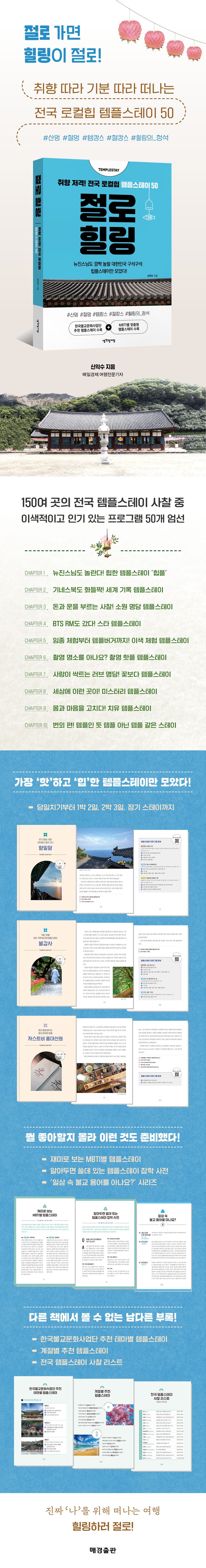 - CHAPTER 9 몸과 마음을 고치다! 치유 템플스테이(295p)