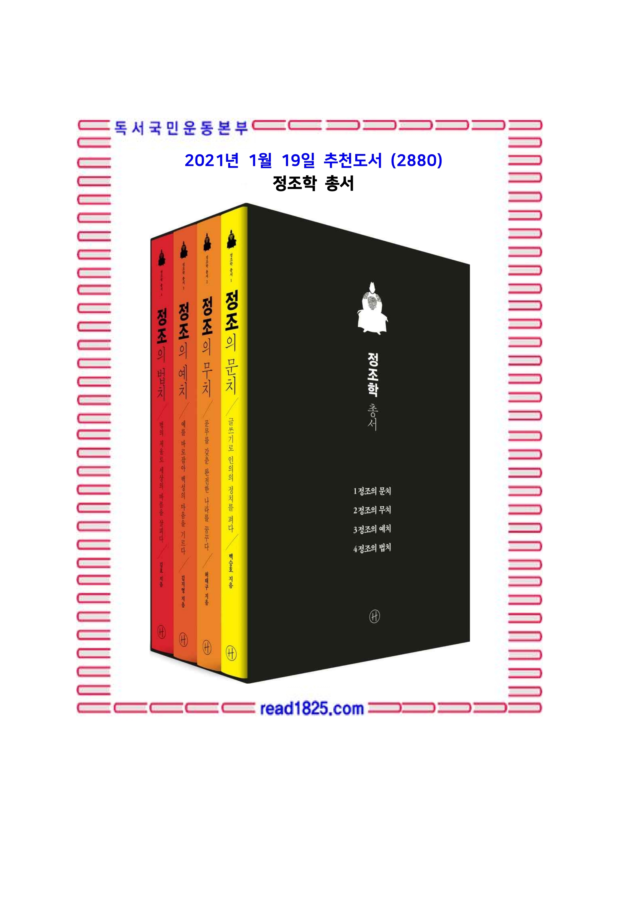 그동안 우리는 200년 전 정조를 현대의 시선에서 보아왔다. 우리 역사에서 18세기 후반은 ‘조선의 르네상스’여야 했고, 그에 발맞춰 정조는 구습을 개혁하여 근대 국가의 여명을 준비한 계몽군주 또는 목적을 위해 수단과 방법을 가리지 않는 노련한 정치가라는 두 가지 얼굴을 지니게 되었다. 과연 정조는 이러한 해석들에 만족할까? 이번에 출간된 ‘정조학 총서’(전 4권)는 정조에 대한 기왕의 고정된 이미지를 또 한 번 버릴 것을 제안한다. 새롭게 정조에 다가가는 방법은 “오직 정조의 ‘말과 행동’(텍스트)을 ‘역사적 맥락’(컨텍스트)을 고려하여 되도록 당대의 관점과 시야에서 해석하는 것이다.”(4권 ‘책을 펴내며’에서) 당대의 사료가 보여주는 정조는 익히 알려진 모습과는 달리 성리학의 가치가 실현되는 나라를 완성하기 위한 개혁을 추진한 군주였다. 이 총서는 정조가 추구한 성리학의 가치를 중심에 놓고, 문·무·예·법이라는 네 분야로 나누어 정조와 그의 시대를 총체적이고 객관적으로 통찰한 최초의 ‘정조학’ 연구 성과다. 정조의 삶과 그가 남긴 글을 현대의 시선에 가두지 않고 18세기 후반 조선이라는 당대의 맥락에서 재해석하고 그 의미를 찾아가며, 정조와 그의 시대의 참모습을 되살려낸다.