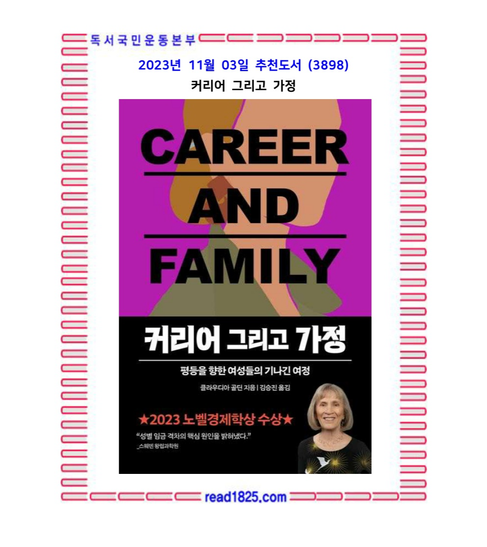 이 책《커리어 그리고 가정》은 커리어와 가정, 그리고 공평한 관계에 대한 열망이 지난 한 세기간 어떻게 생겨났으며 오늘날 어떻게 달성될 수 있을지에 대한 이야기이다. 하나의 간단한 해법은 없다. 하지만 문제를 제대로 파악하고 올바른 이름을 붙인다면, 더 나은 방향을 향해 길을 놓을 수 있을 것이다. 더 많은 여성들이 커리어도 가지면서 “내가 원하는 것을 원하는 남자”도 만날 수 있게 말이다.