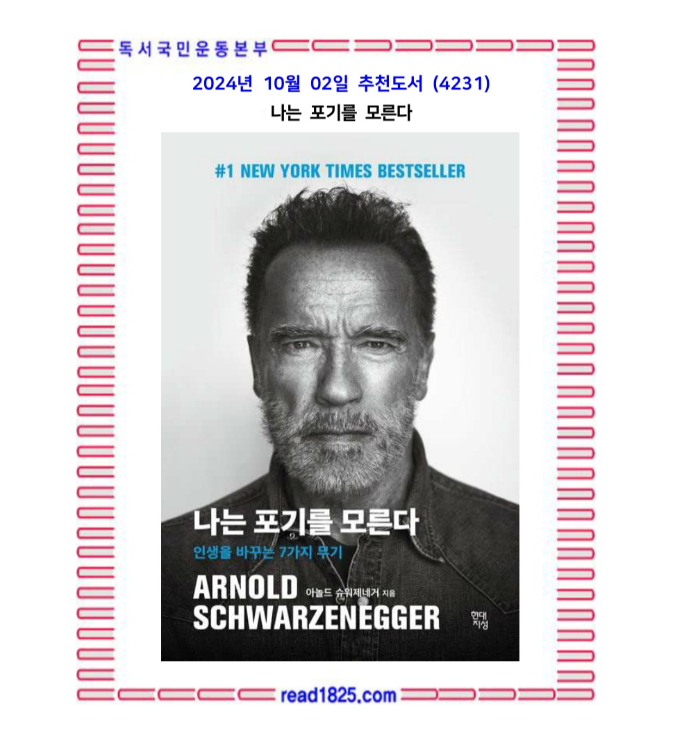 안녕하세요, 한국의 독자 여러분, 아놀드 슈워제네거입니다. 저는 78세가 된 지금도 제 이야기를 나누는 걸 즐깁니다. 사실 제가 자기계발 전문가가 될 줄은 꿈에도 몰랐습니다. 많은 분이 저를 남성성의 상징으로 보시기도 하고, 또 어떤 분들은 제가 캘리포니아 주지사 시절 보수적인 말을 하면서도 진보적인 정책을 펼쳤던 변화무쌍한 인물로 여기셨습니다. 여러분이 제 새 책을 보시면 깜짝 놀라실 겁니다. 이번엔 자서전이 아닙니다. 2012년에 이미 “토탈 리콜”(Total Recall)이란 책으로 제 인생 이야기를 썼거든요. 이 책으로는 제 경험을 바탕으로 여러분께 조언을 드리고 싶었습니다.