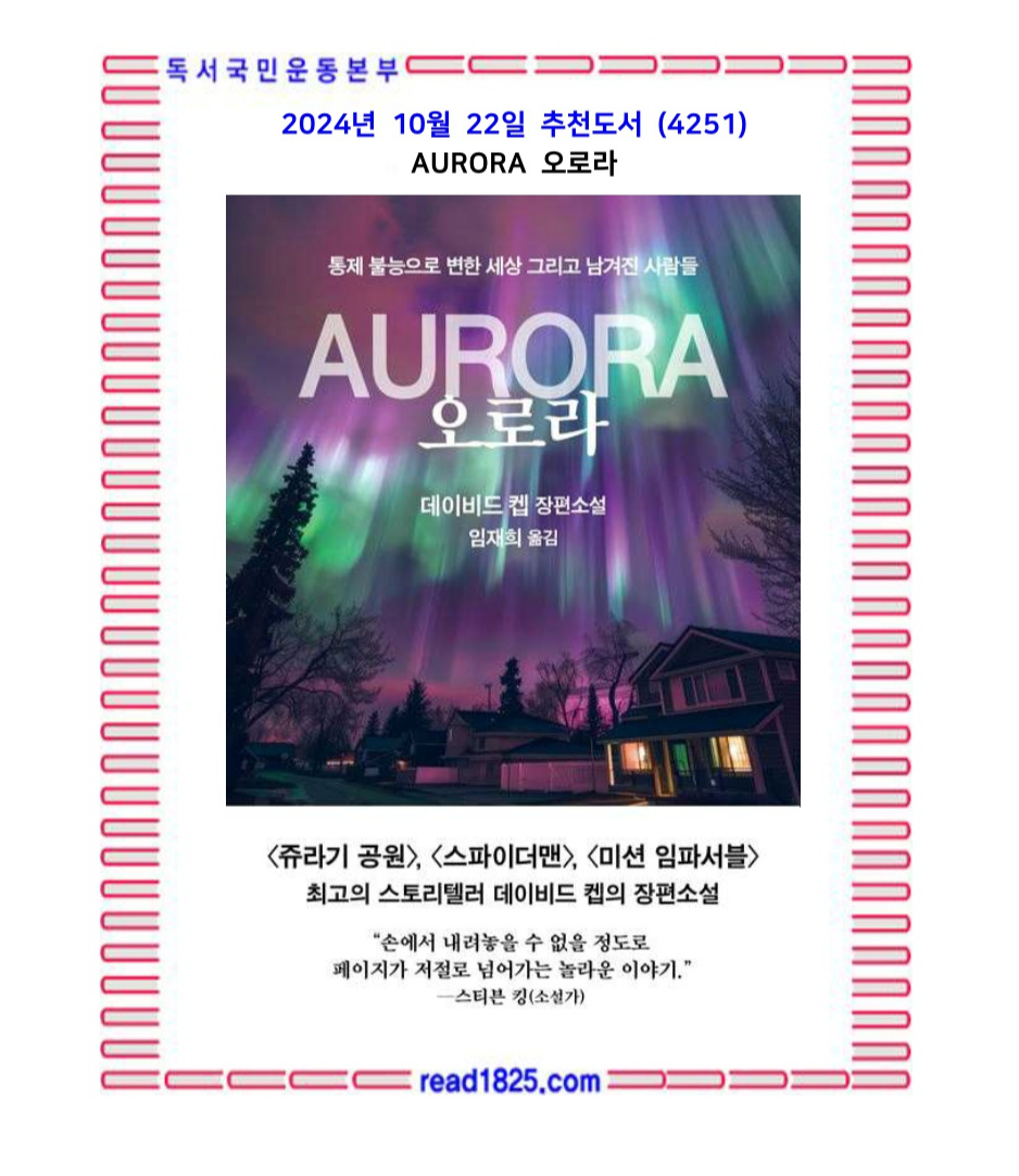 『오로라』는 다양한 인물들이 직면한 생존의 이야기를 통해 인간의 본성과 현대 사회의 취약성을 탐구한다. 데이비드 켑은 강렬한 스릴과 서스펜스를 통해 독자들에게 강한 인상을 남기며, 현대 사회가 얼마나 전기에 의존하고 있는지를 적나라하게 보여준다. 전기 없는 세상에서 우리는 어떻게 살아남을 수 있을까?