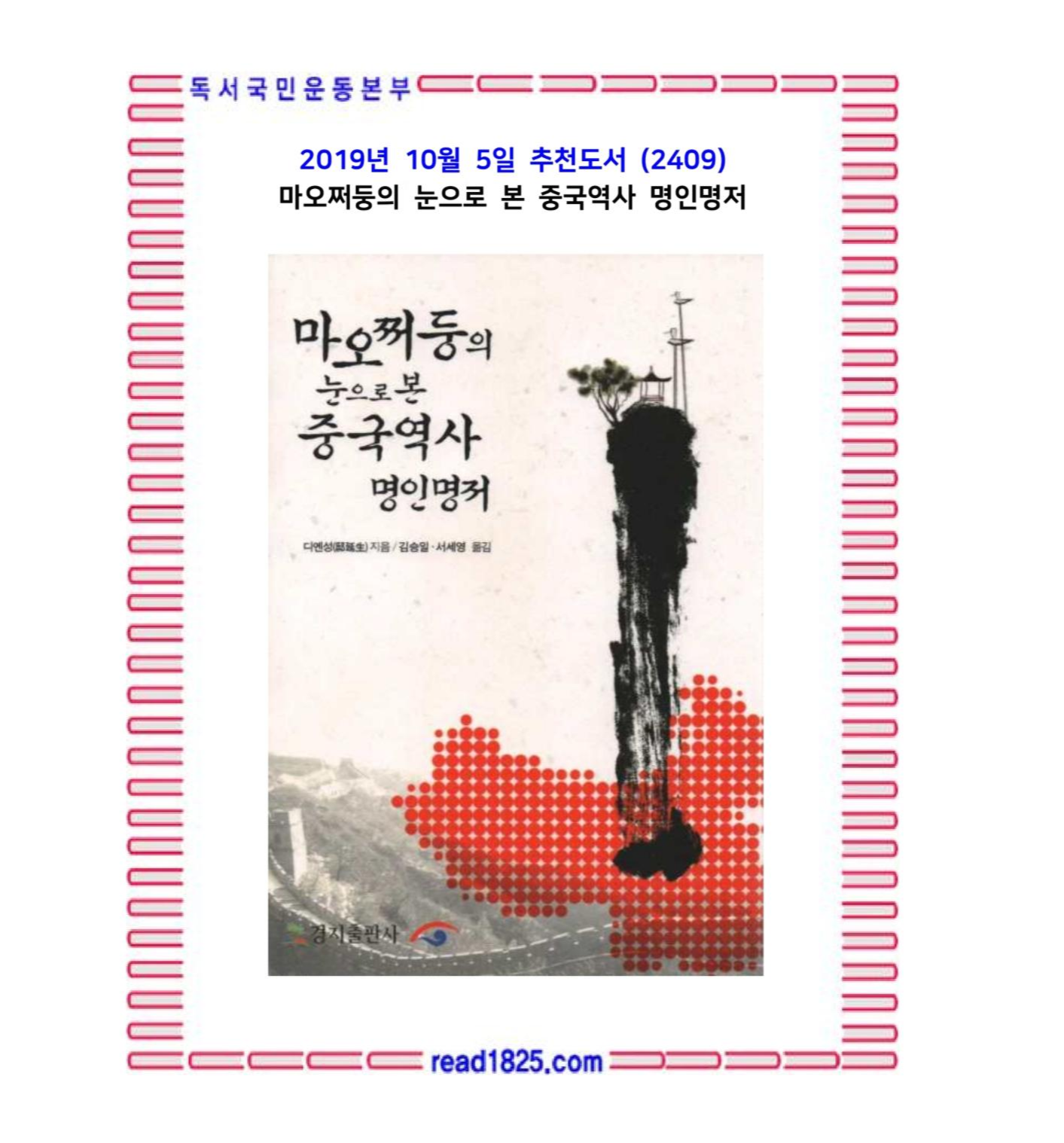 10월의 추천도서(2409)마오쩌둥의 눈으로 본 중국역사 명인명저-디옌성