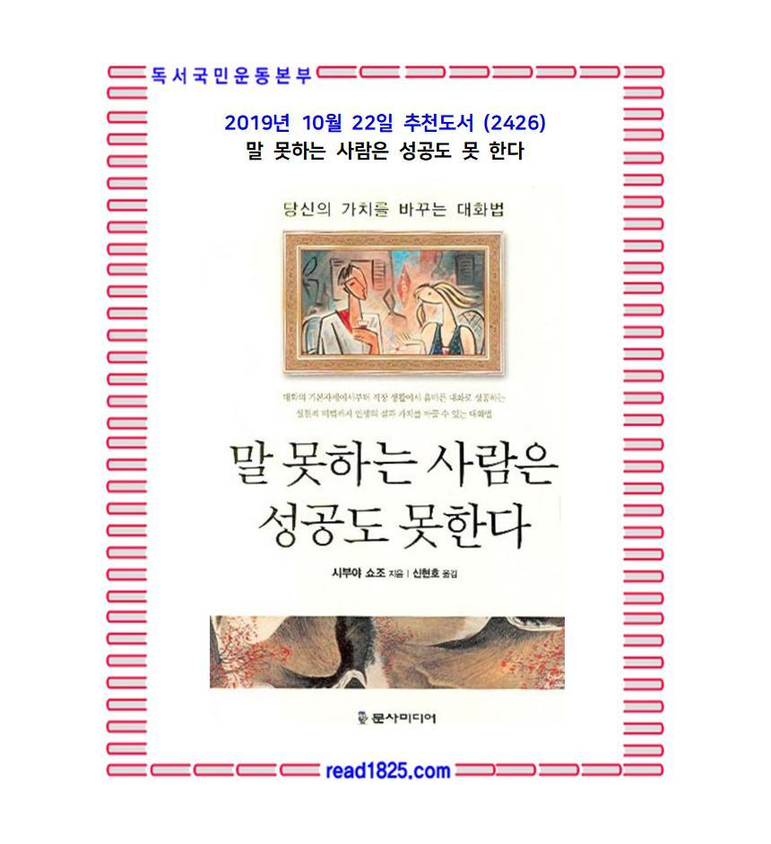 | 10월의 추천도서(2423) 만족을 알다 - 애즈비 브라운 (0) | 2019.10.19 |