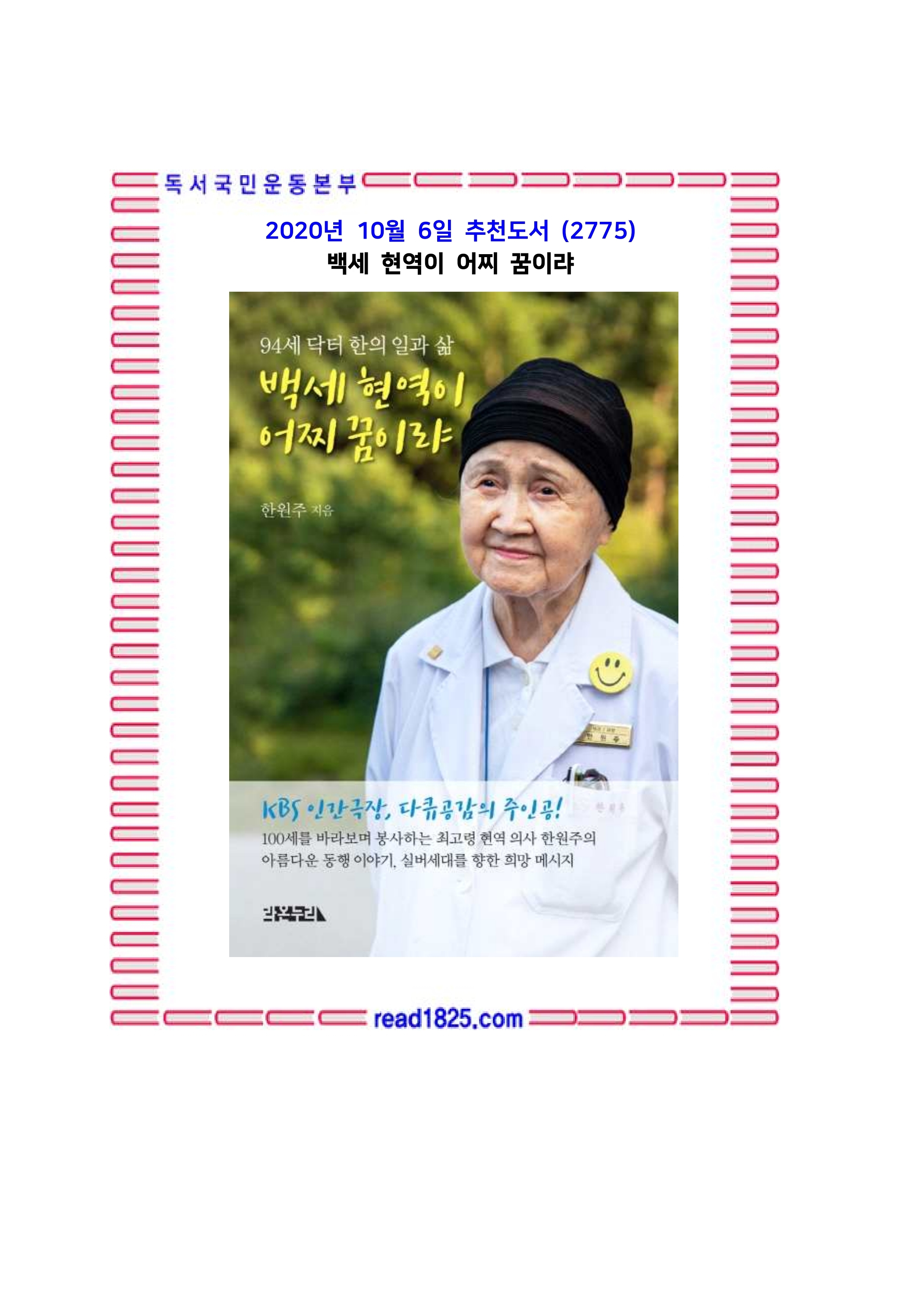 ‘백세 현역이 어찌 꿈이랴’라는 자전적 에세이를 출간한 한 여의사가 있다.