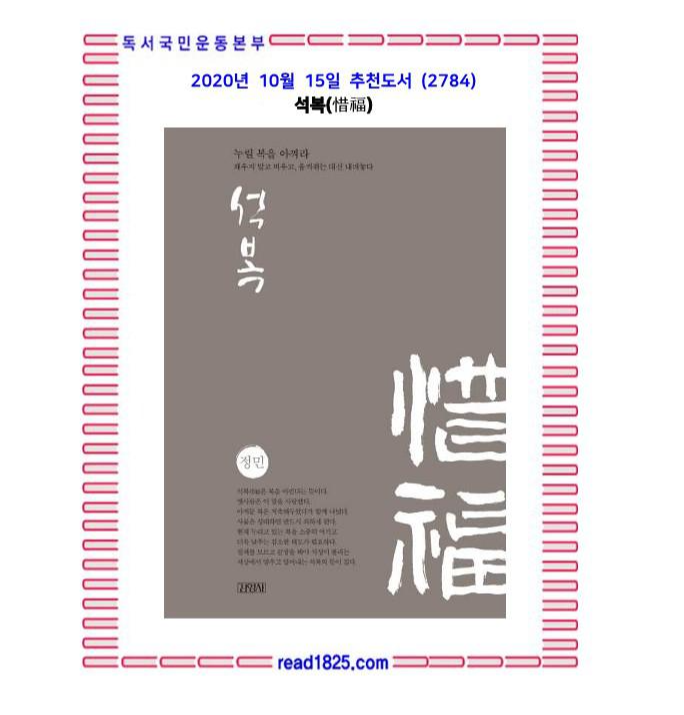 사물은 성대하면 반드시 쇠하게 된다. 무엇이든 끝까지 누리면 쇠할 때 그만큼 큰 대가를 치러야 한다. 많이 가졌던 만큼, 한없는 기쁨과 쾌락을 누렸던 만큼, 상실의 폭 또한 깊고 크다. 그러므로 우리는 행복할수록, 여유로울수록, 잘나갈수록, 더욱 근심하고 몸을 낮춰야 한다. 석복은 한마디로 ‘멈춤의 미학’, ‘절제의?미학’이다. 절제를 모르고 끝장을 봐야 직성이 풀리는 세상에서 멈추고 덜어내는 석복의 뜻이 깊다. 이 책이 현재를 살아가는 많은 사람들에게 인생의 중요한 혜훈(惠訓)이 되어줄 것이다. 일독을 권한다.