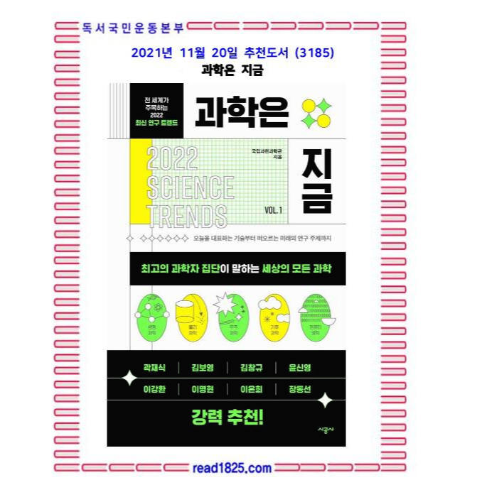 현대인의 교양이라고 불리는 과학은 고정된 지식의 창고가 아니라 새로운 발견과 연구로 항상 변화한다. 따라서 교과서 속 고정된 이론 외에 달라지는 내용을 알아가는 것이 무엇보다 중요하다. 하지만 모든 것을 파악하기에 과학이 발전하는 속도는 눈으로 따라가기조차 벅차게 느껴진다. 이때 높게만 보이던 과학의 문턱을 수월하게 넘도록 돕는 친절한 책, 《과학은 지금》이 나왔다.