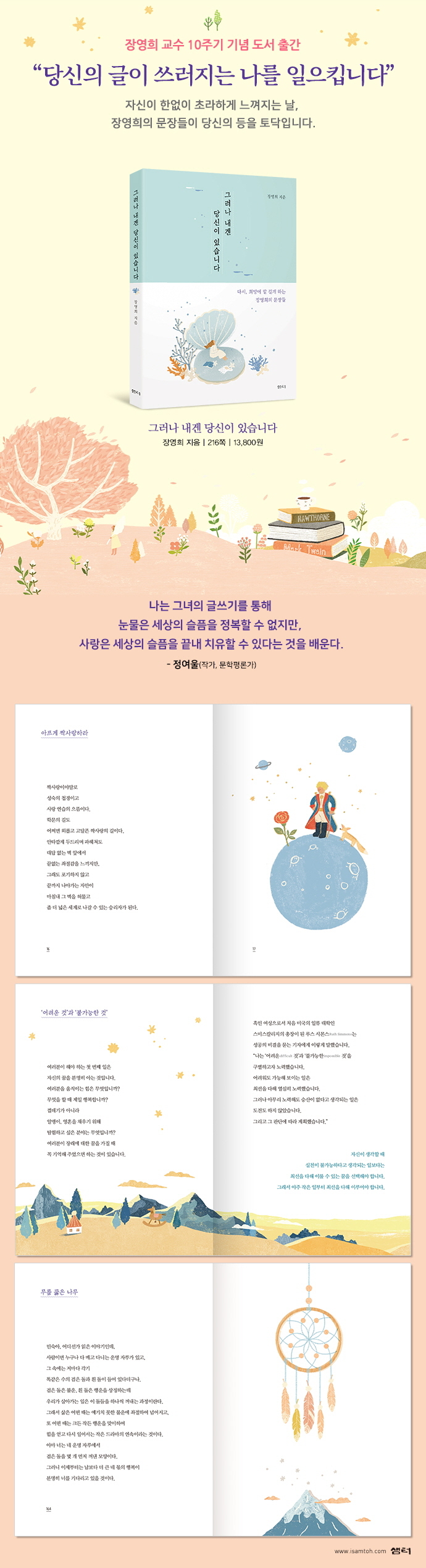 무엇보다 장영희 교수의 글에는 다시 일어서게 하는 힘이 있다. 자신이 한없이 작아지고, 하루에도 몇 번씩 주저앉아 포기하고 싶은 마음이 들 때 장영희 교수의 글이 우리를 일으켜 세운다.